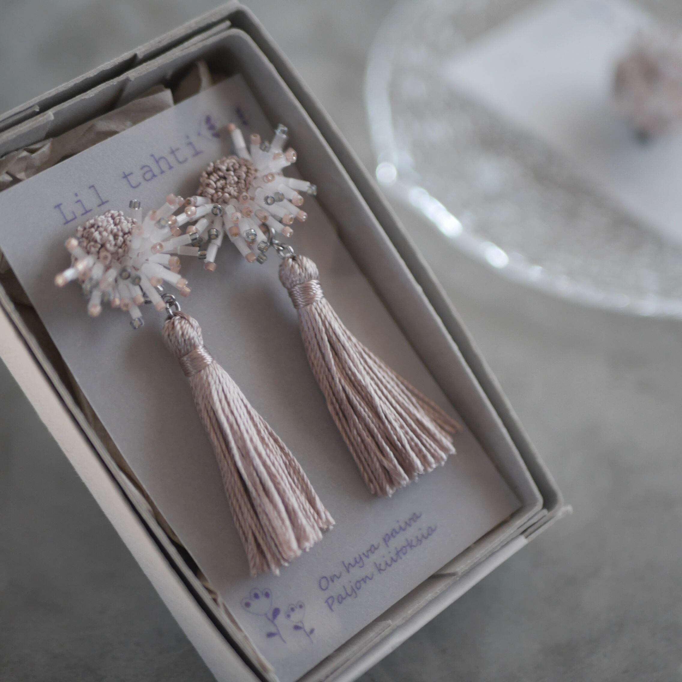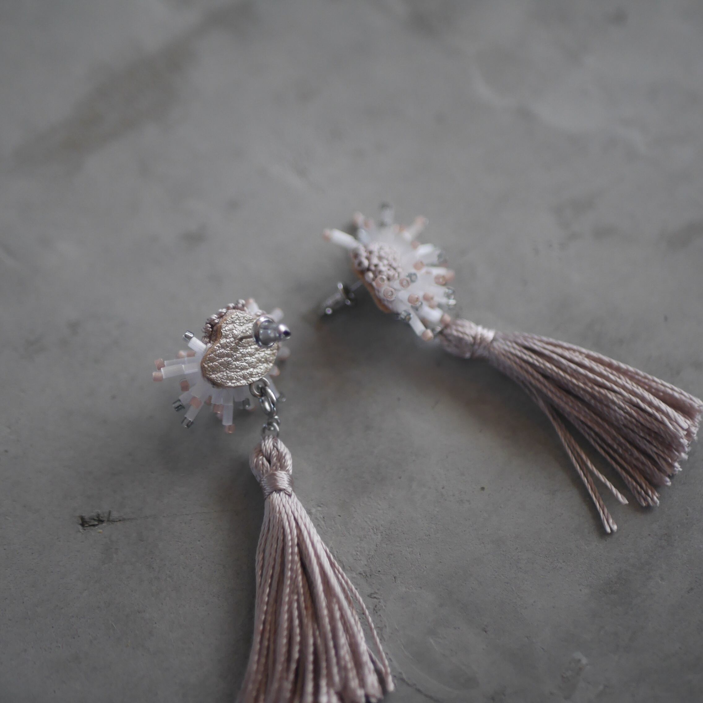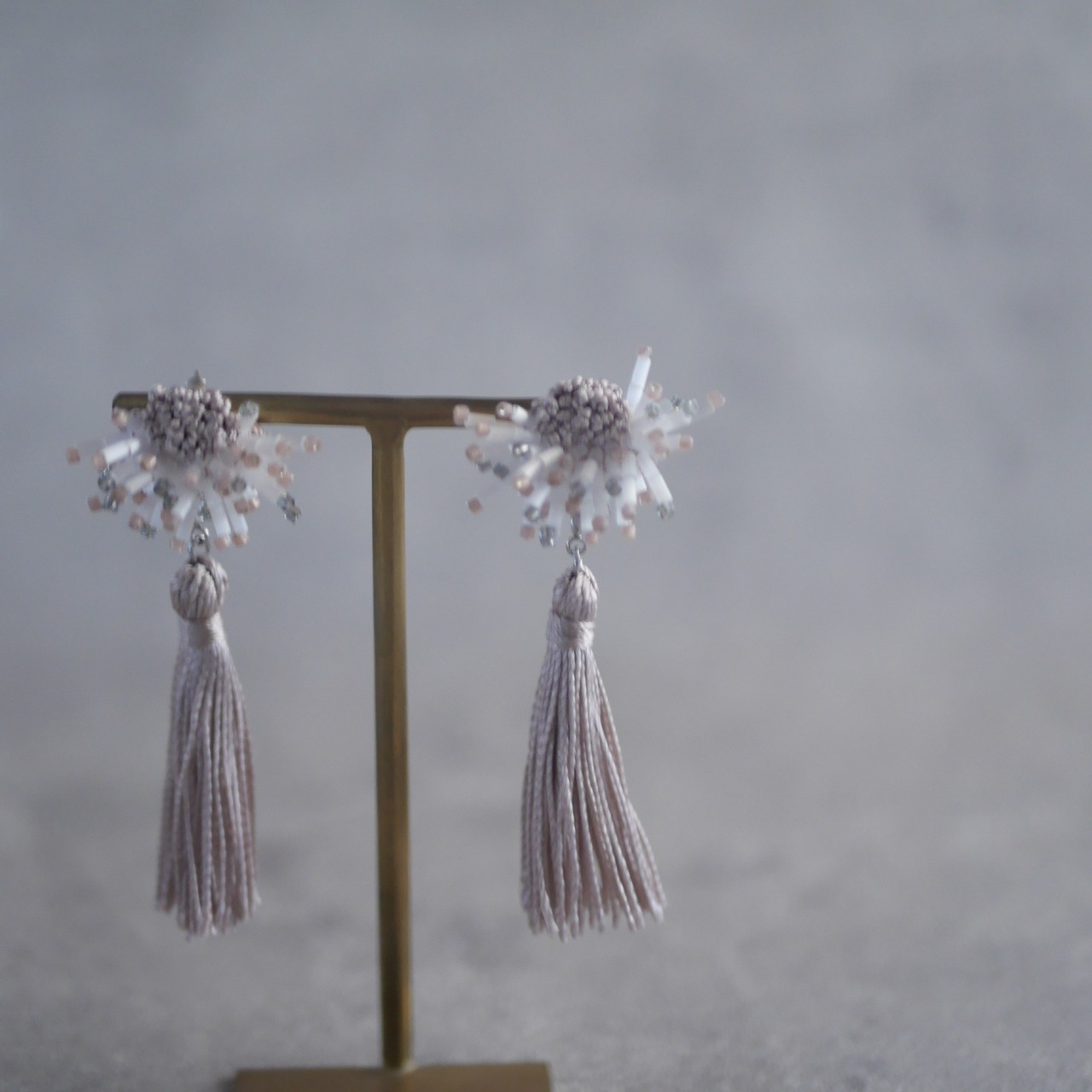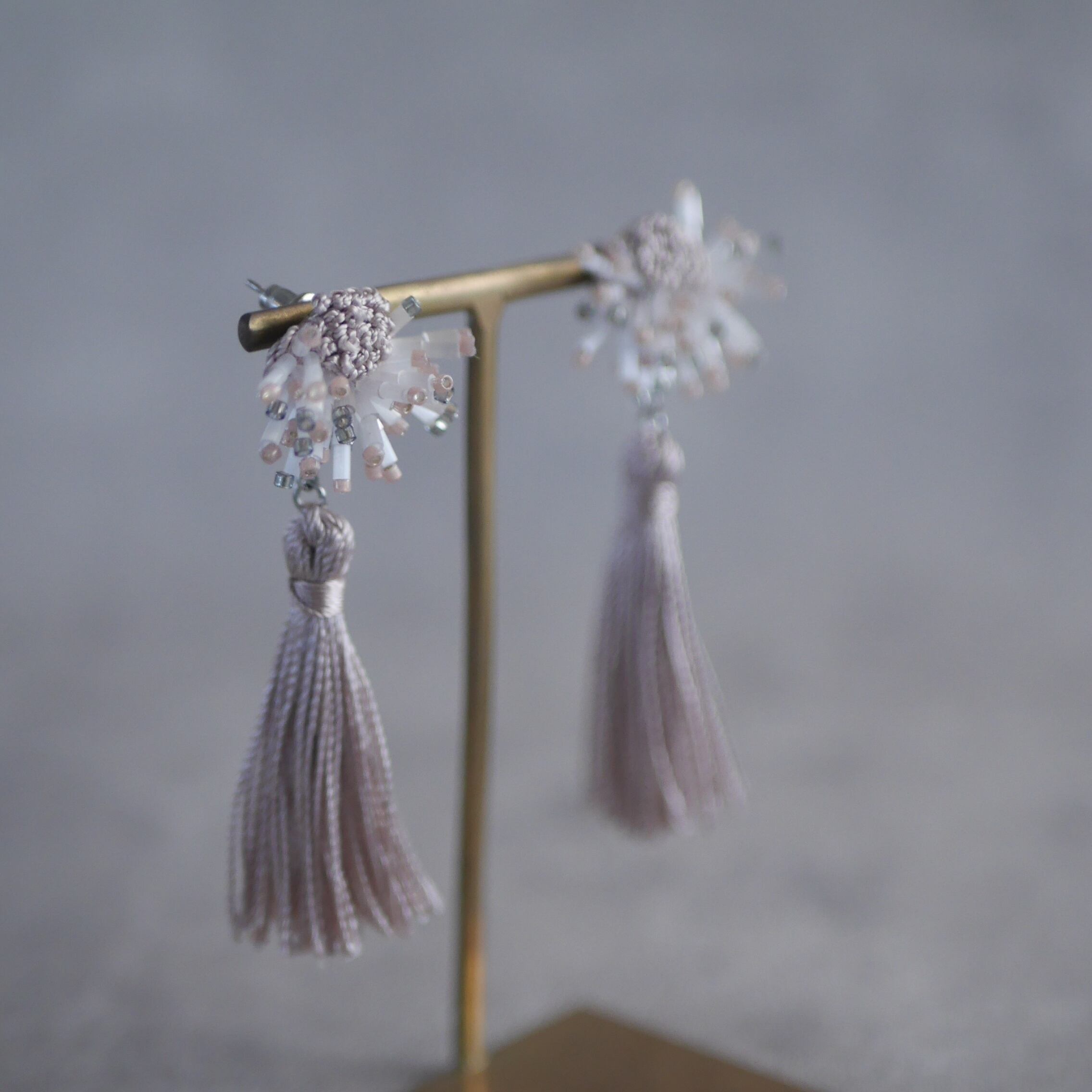 タッセルが取り外し可能な2wayタイプのビーズ刺繍ピアス/イヤリングです。