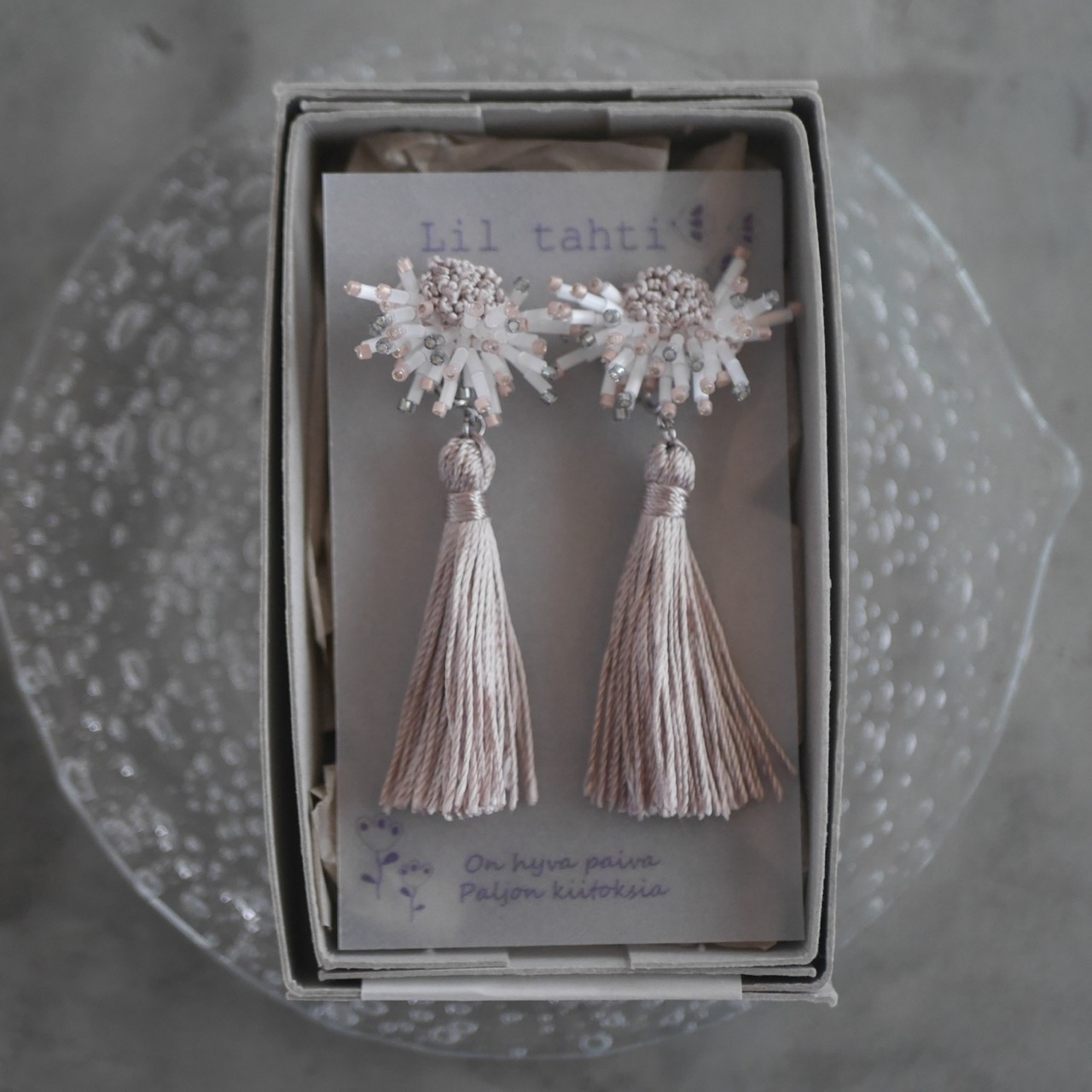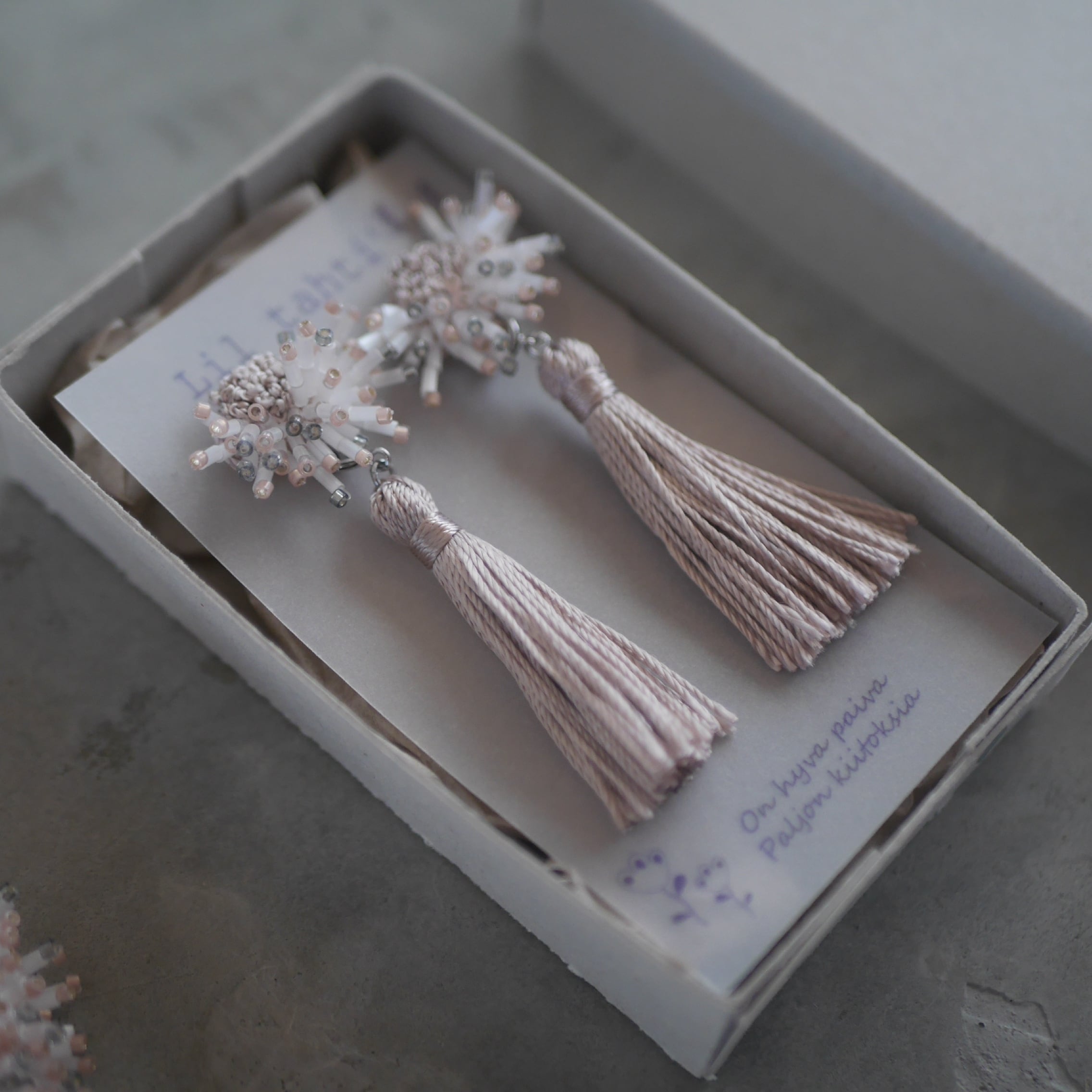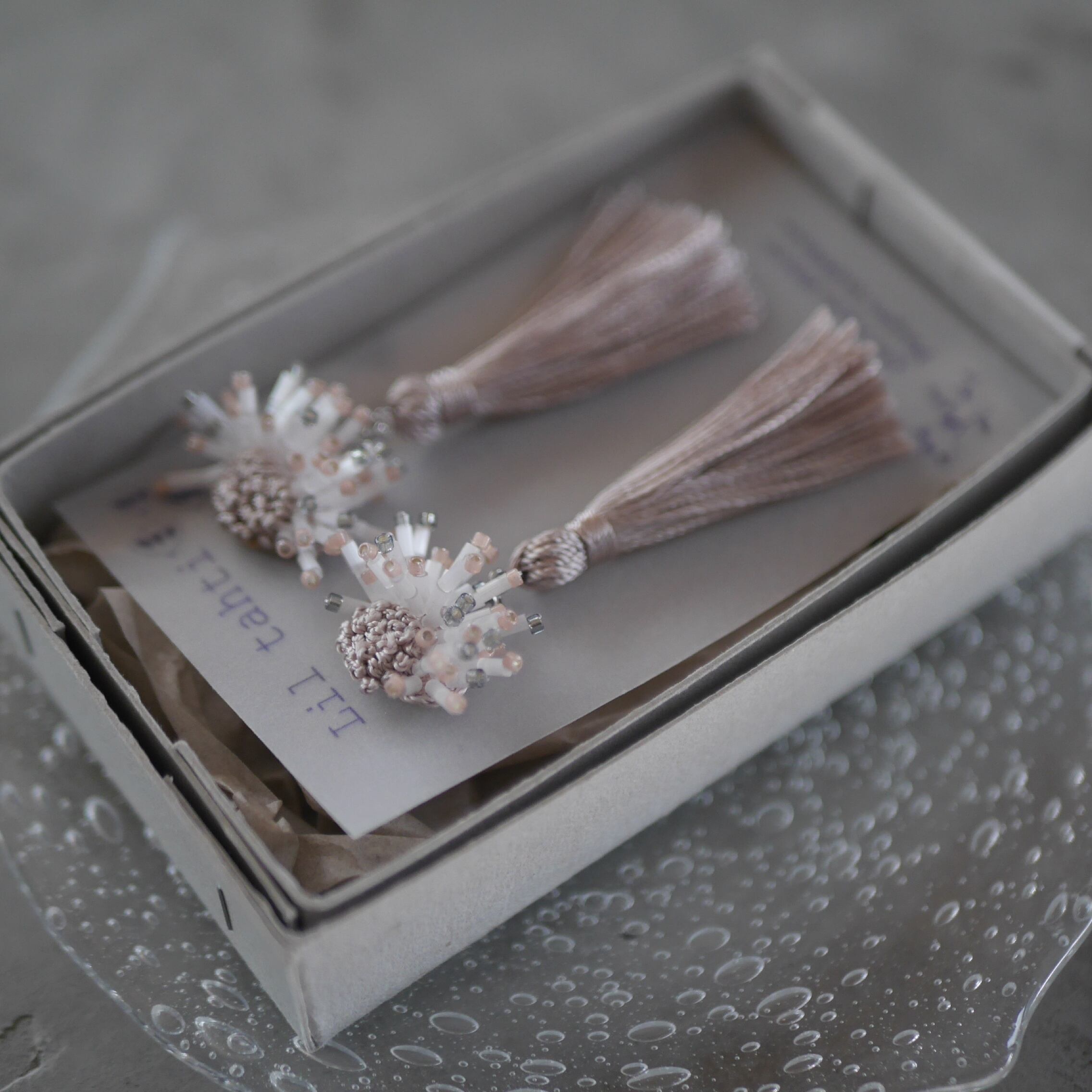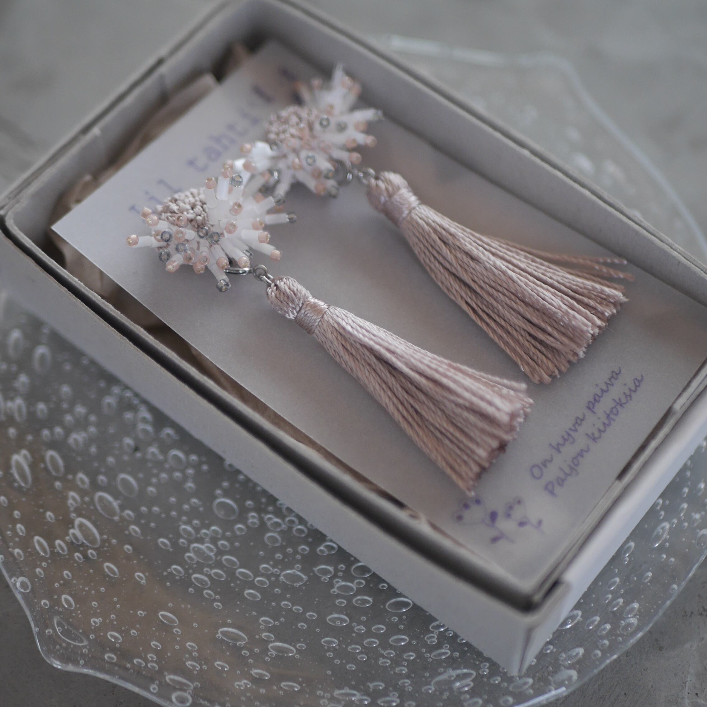 タッセルが取り外し可能な2wayタイプのビーズ刺繍ピアス/イヤリングです。
