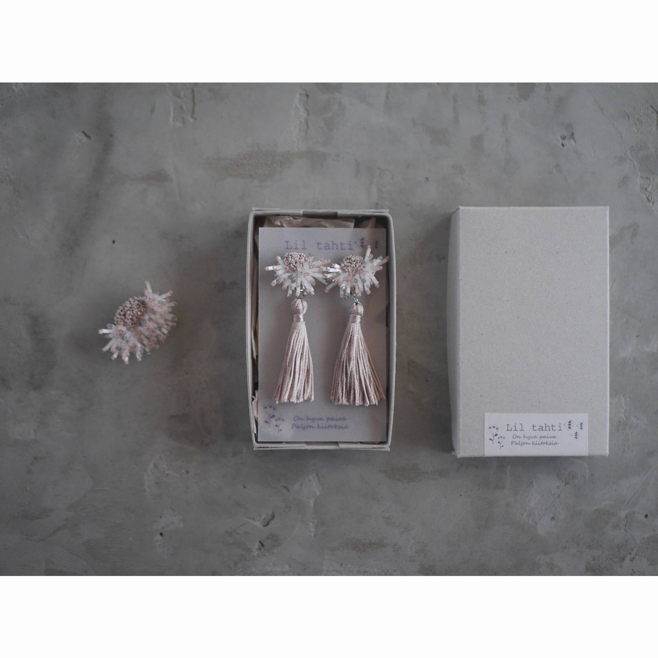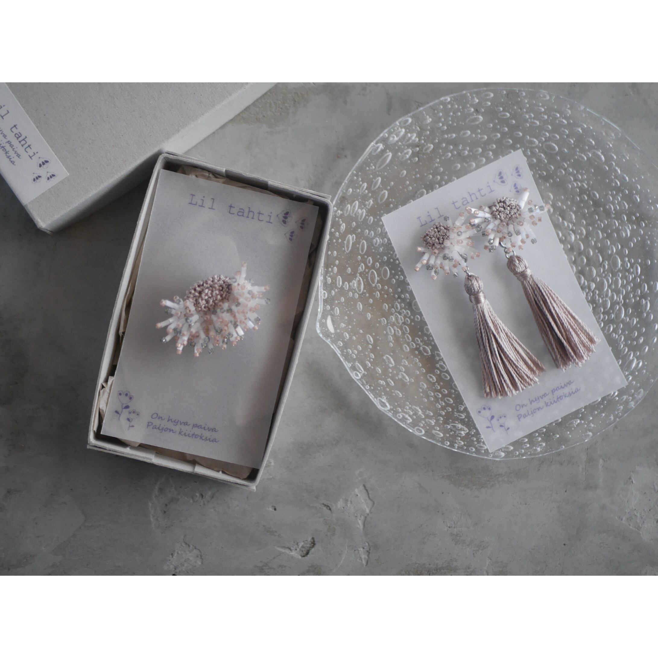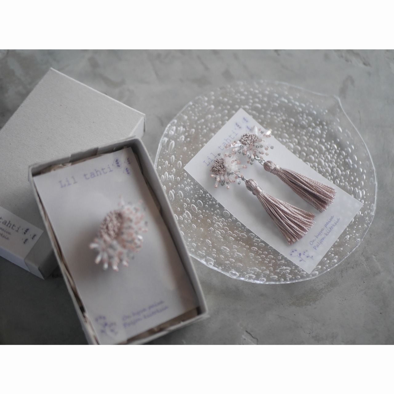 同じシリーズの色違いやブローチ、タッセルなしのピアス/イヤリングもございます。