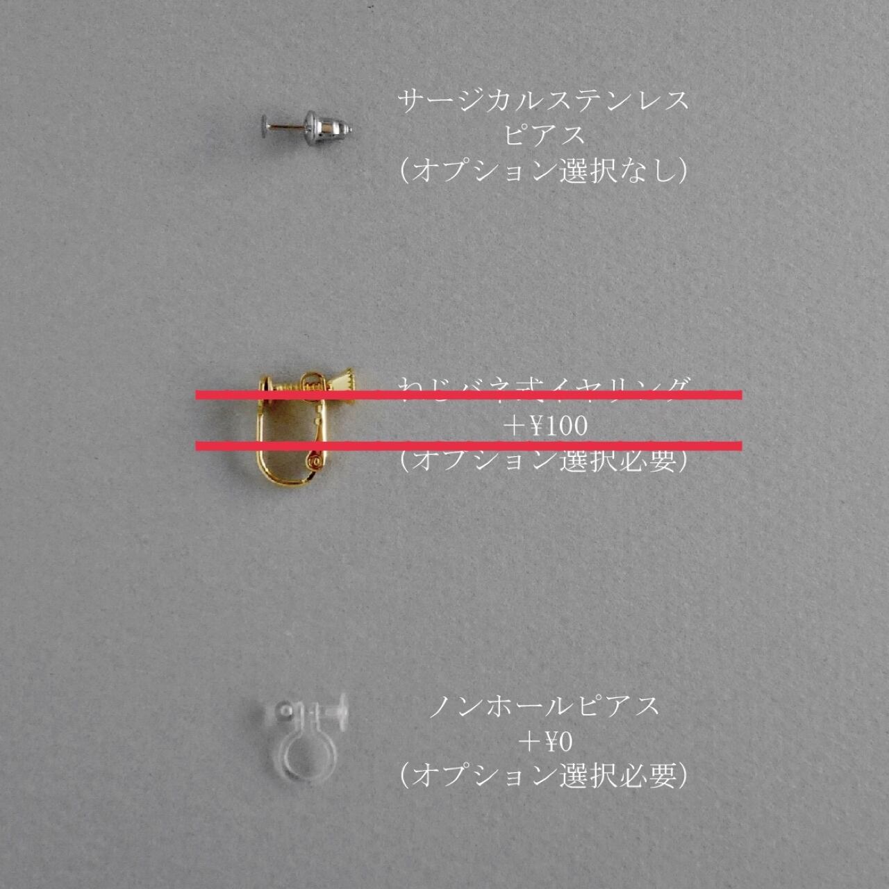 ※イヤリング、ノンホールピアスをご希望のお客さまはオプションでイヤリング、ノンホールピアスをご選択下さい。選択がない場合は通常のピアスとなります。ご購入後の変更はできませんので、ピアスホールのない方はご注意ください。