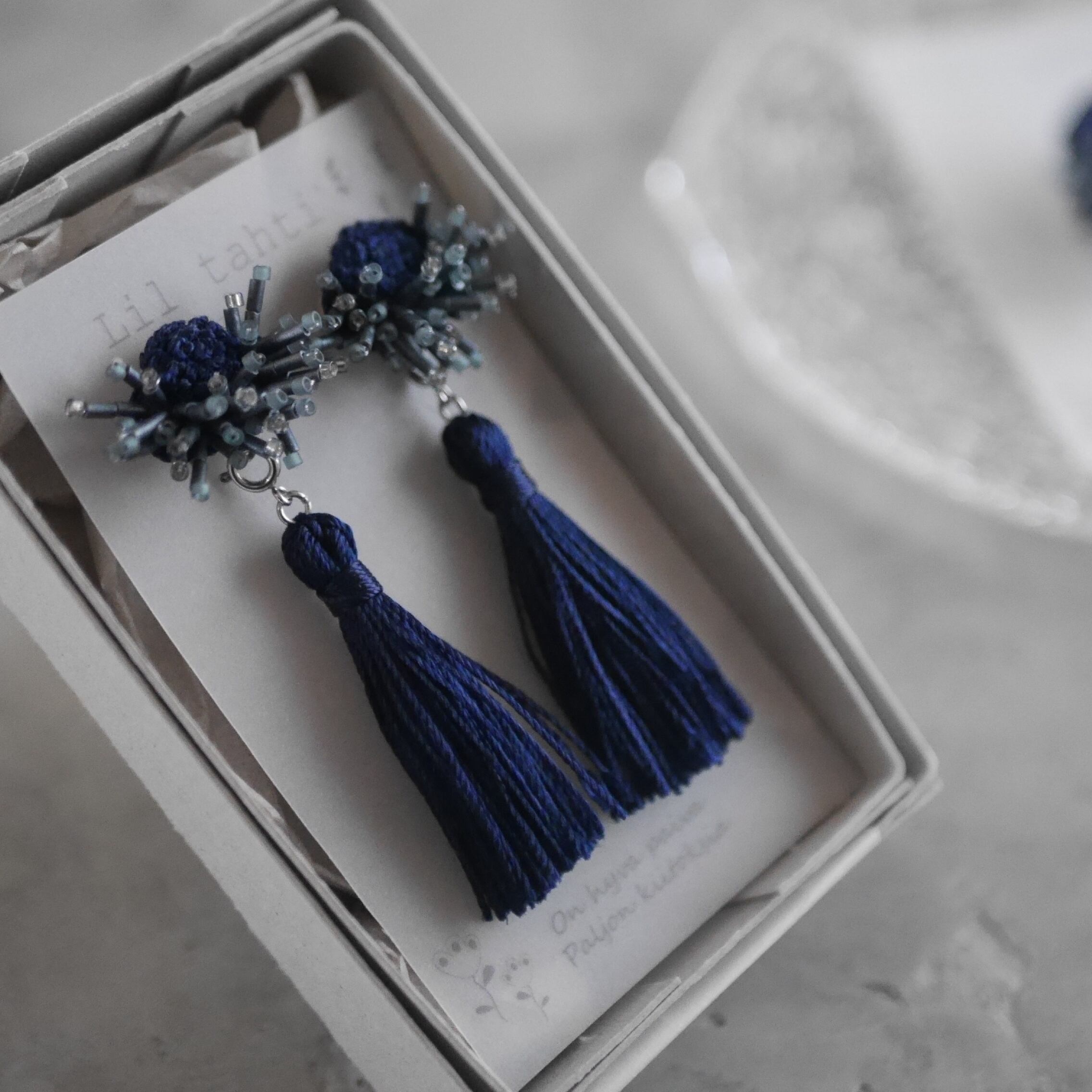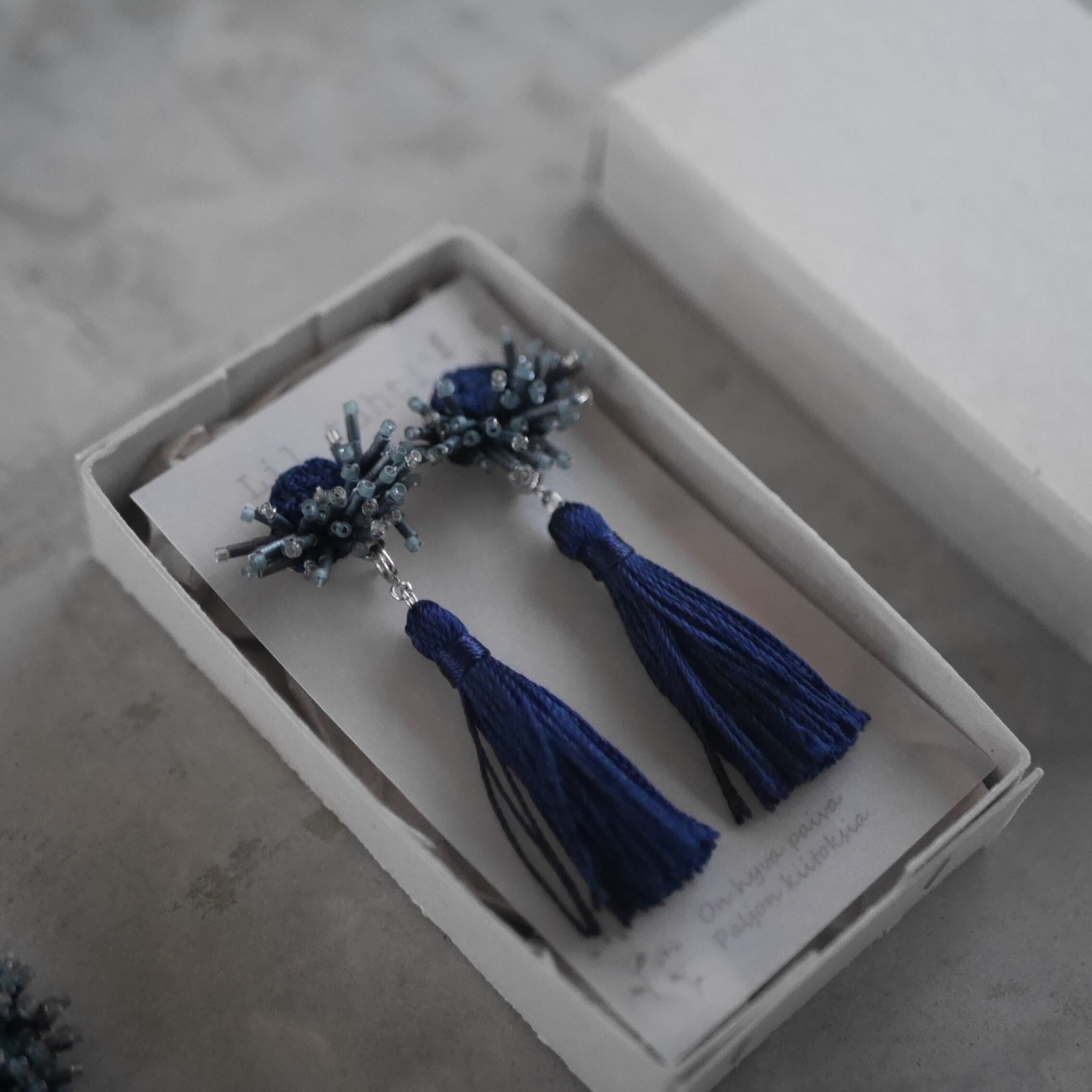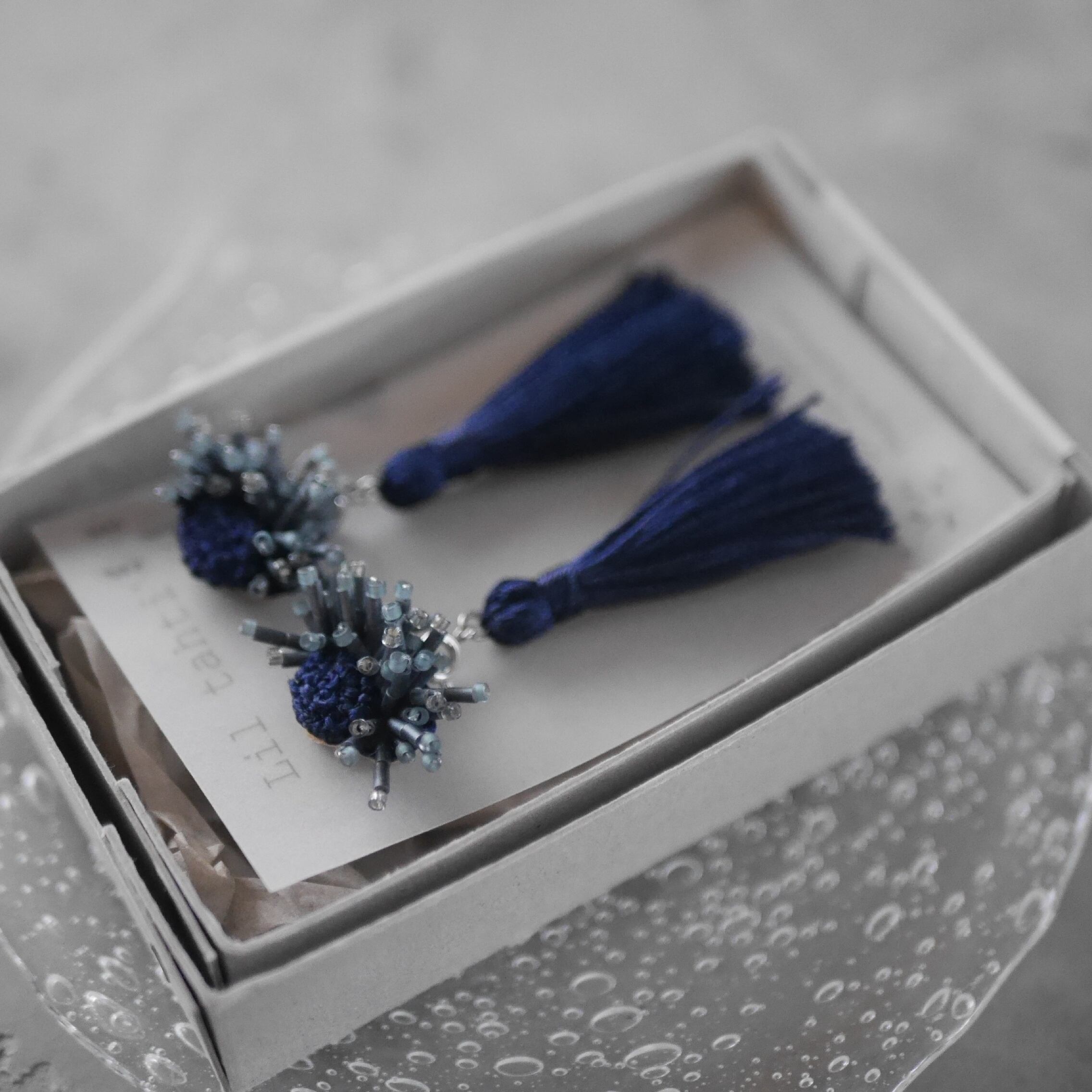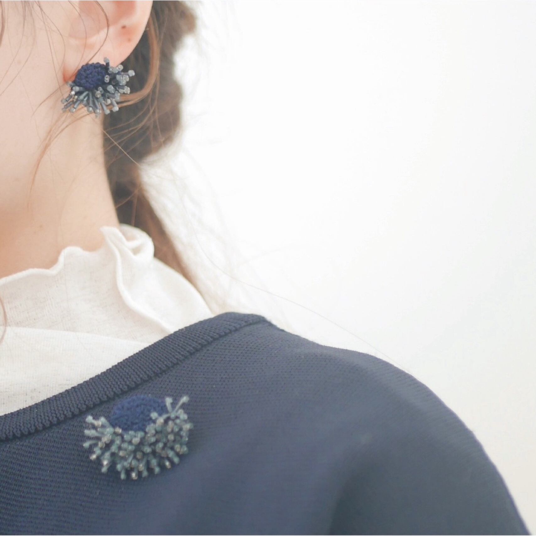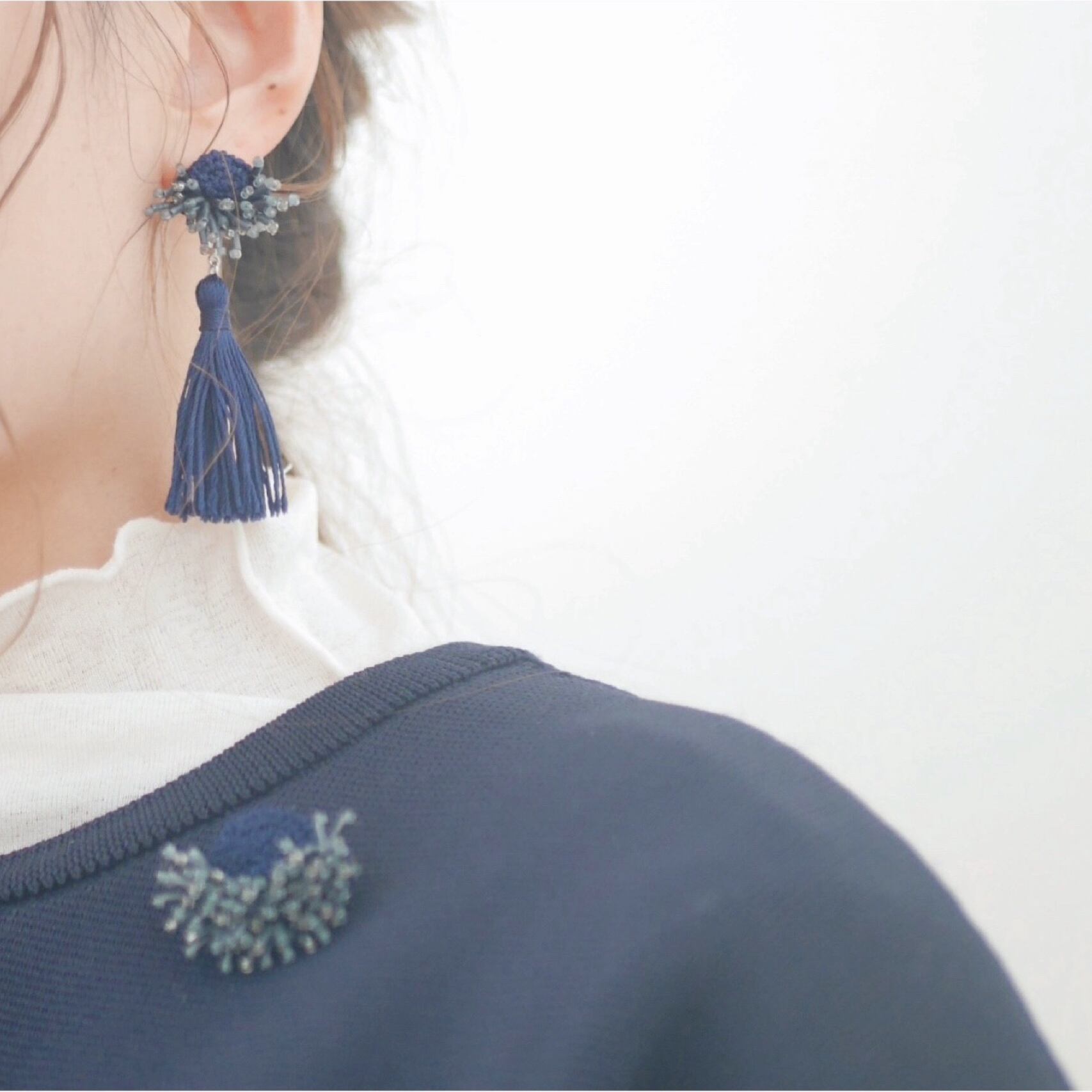 【2way】kori no hana刺繍ピアス/イヤリング(真夜中)【受注制作】