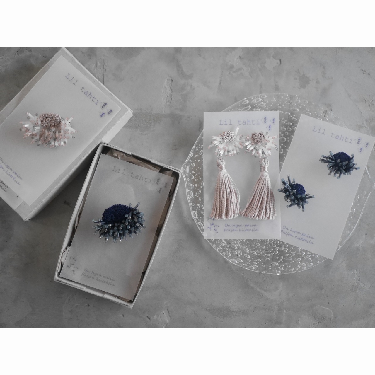 同じシリーズの色違いやブローチ、タッセルなしのピアス/イヤリングもございます。