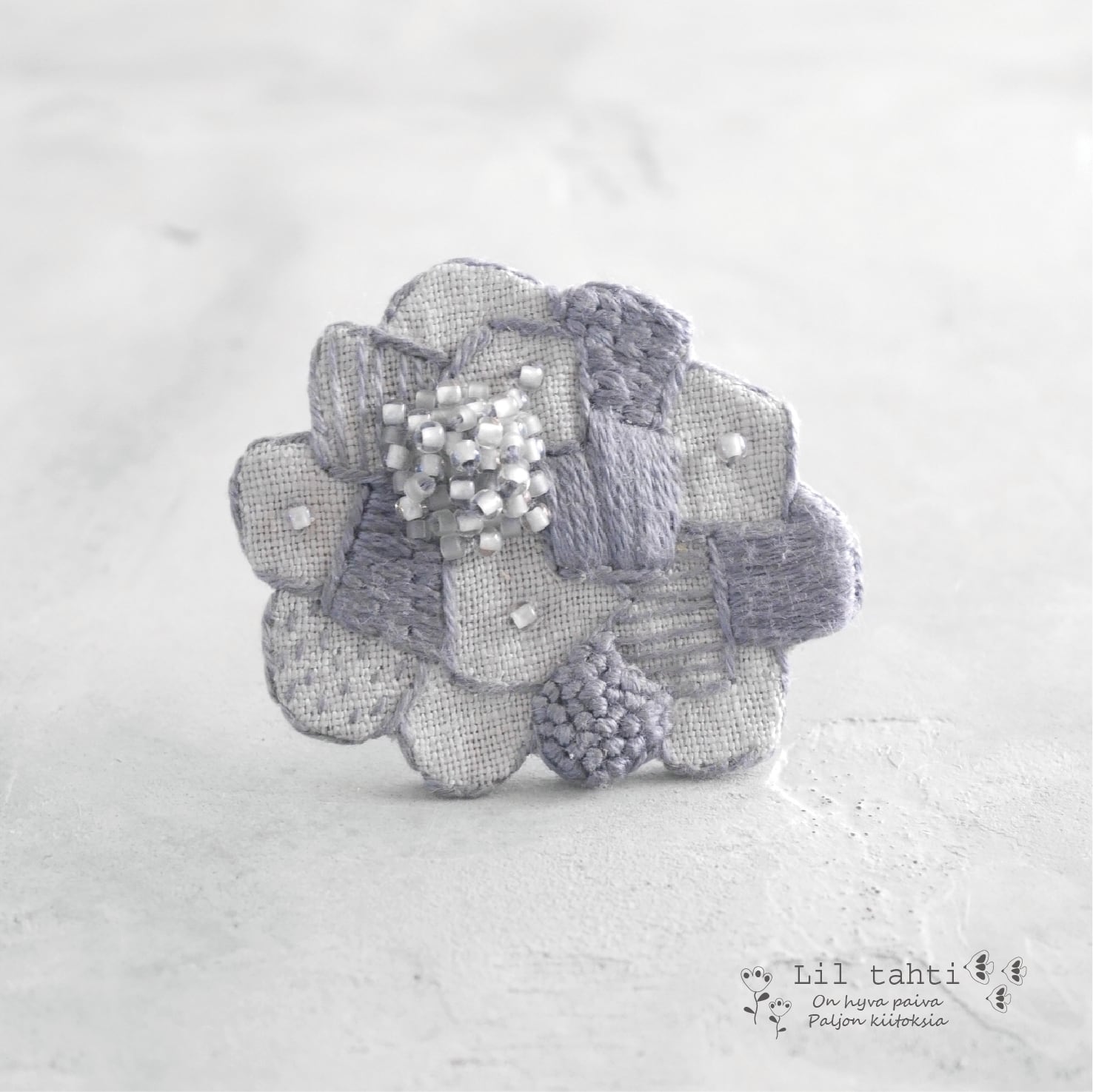 linen ajisai刺繍ブローチ(ブルーグレー)【受注制作】