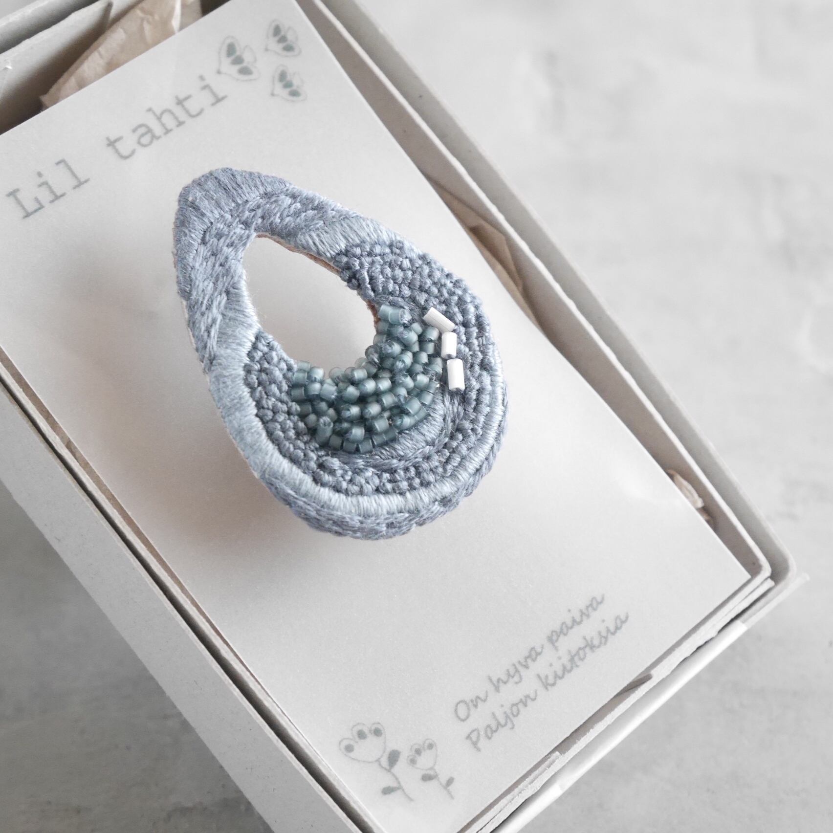 sizuku刺繍ブローチ(ブルーグレー)【受注制作】