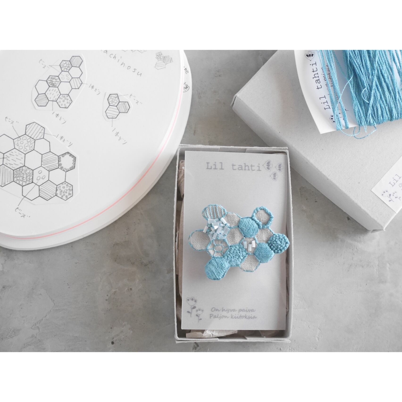 linen hachinosu刺繍ブローチ(ターコイズ)【受注制作】