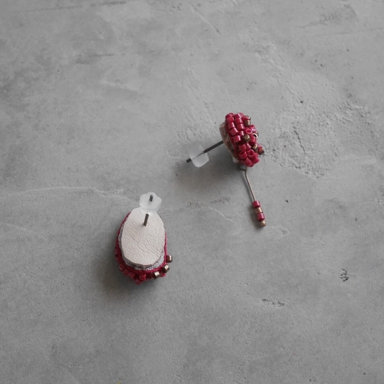linen minori刺繍ピアス/イヤリング(ボルドー)【受注制作】