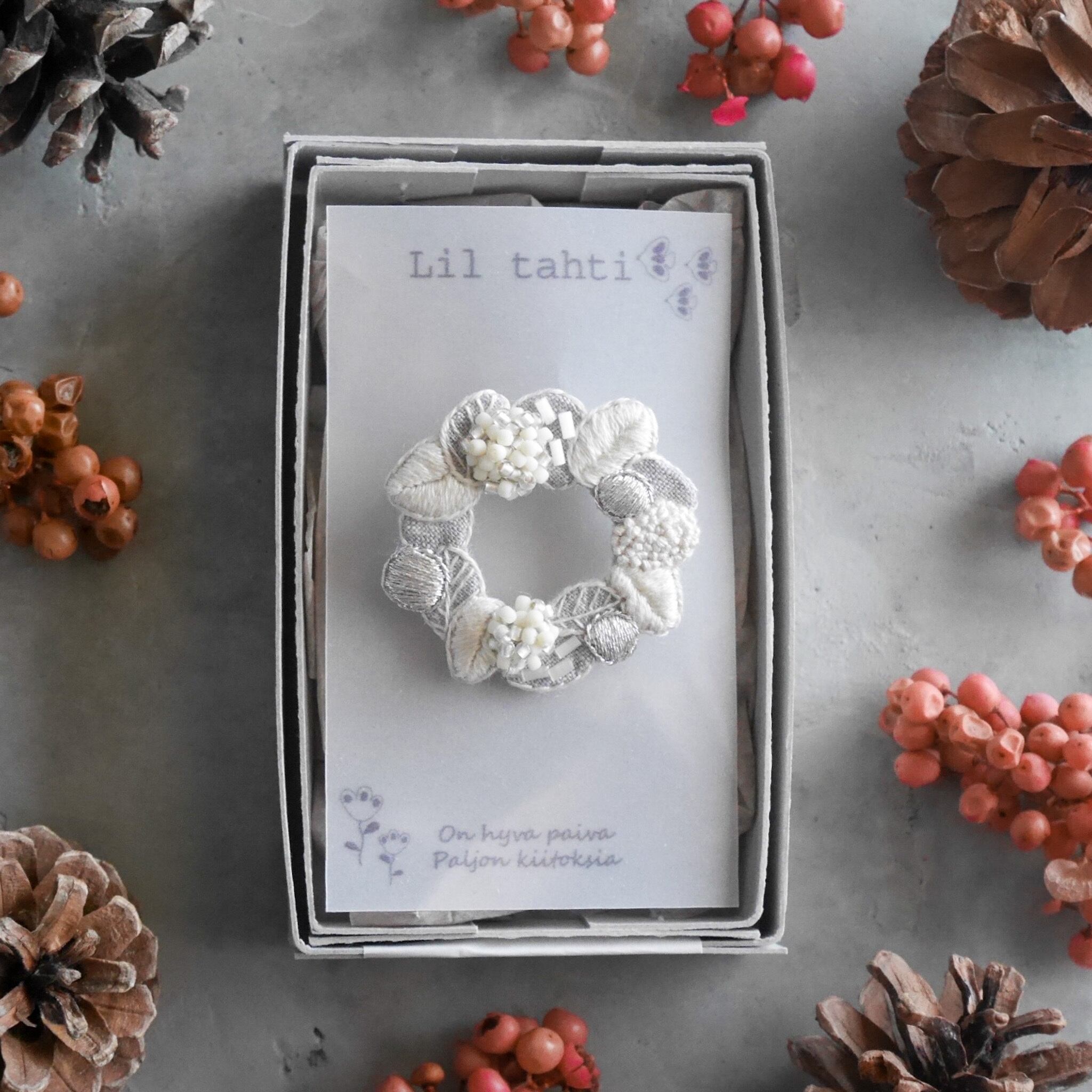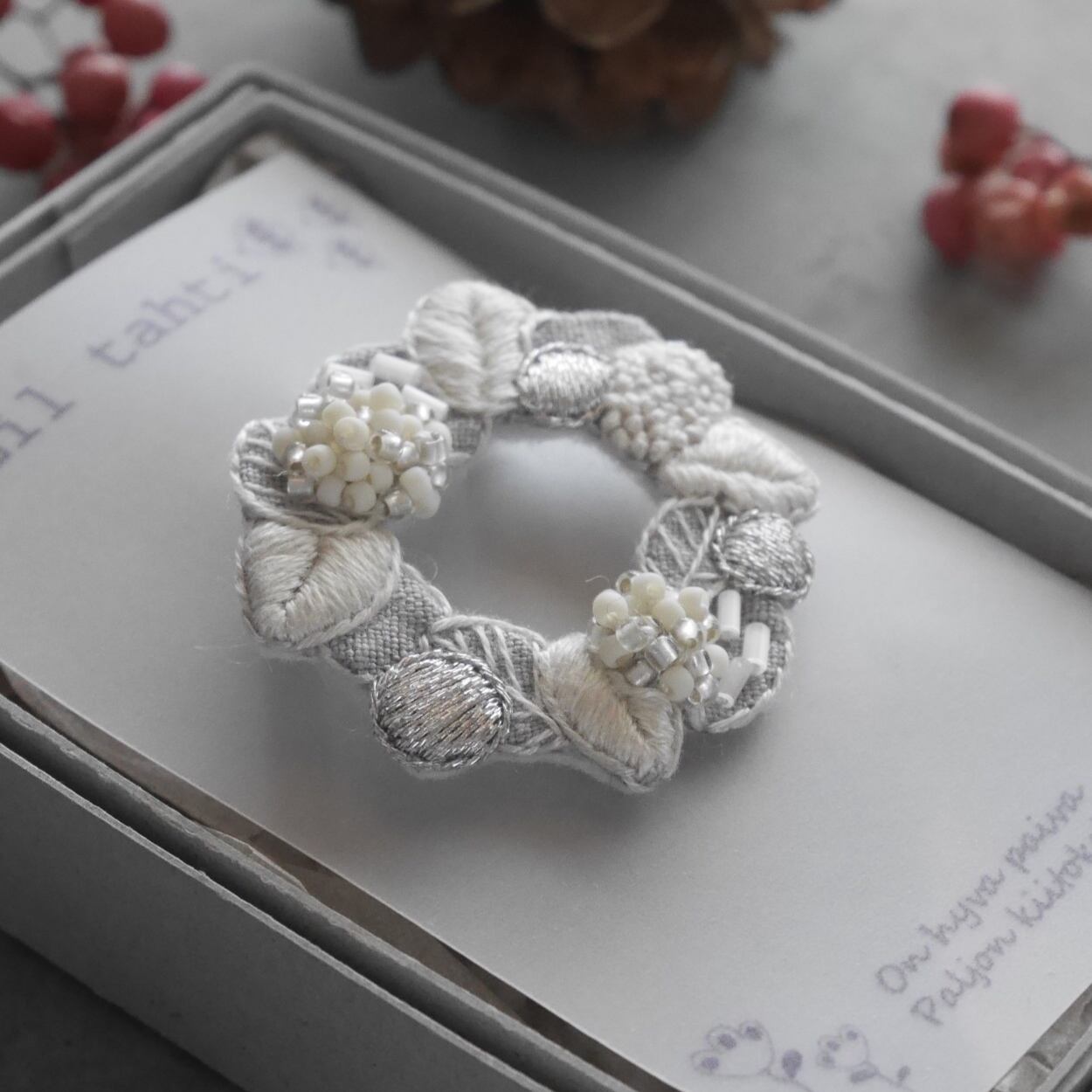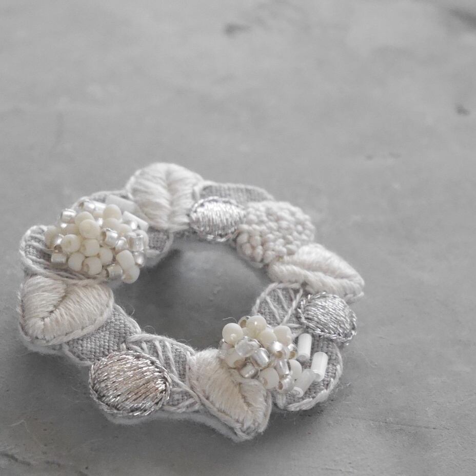linen wreath刺繍ブローチ(オフ)【受注制作】