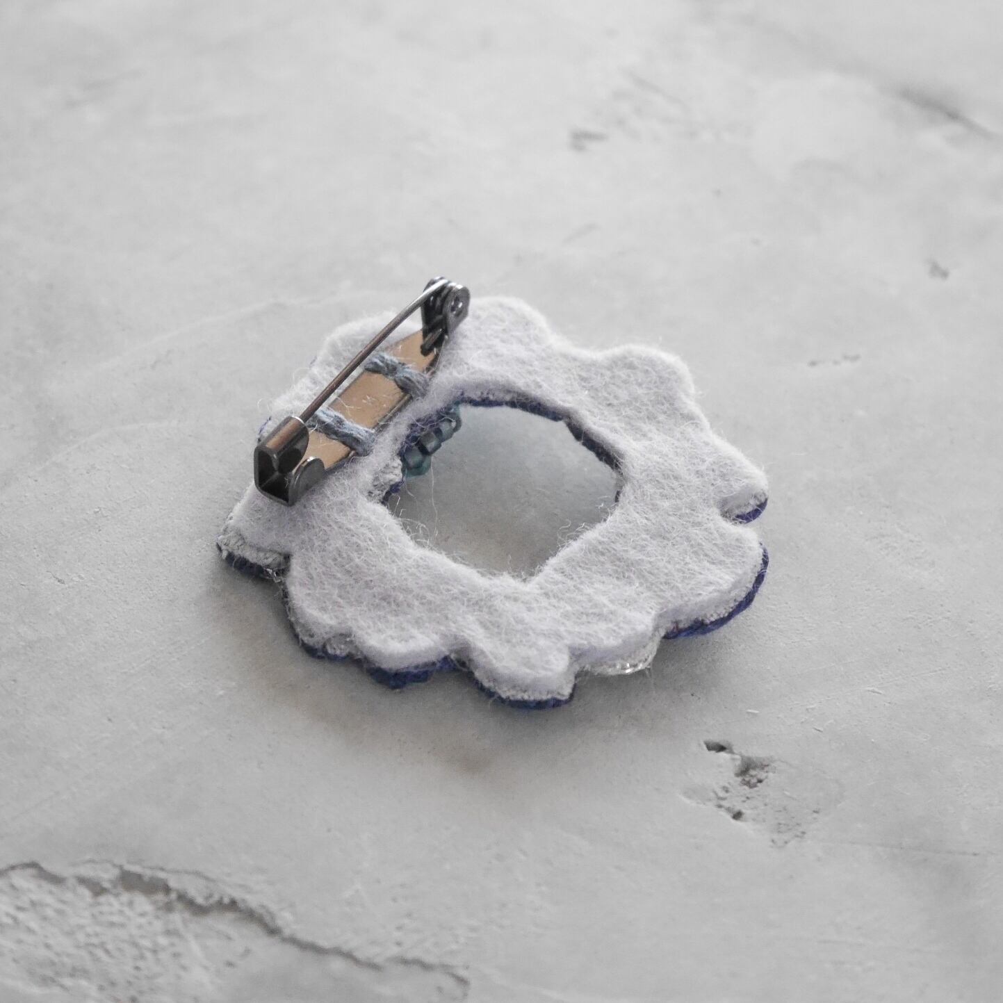 linen wreath刺繍ブローチ(ネイビー)【受注制作】