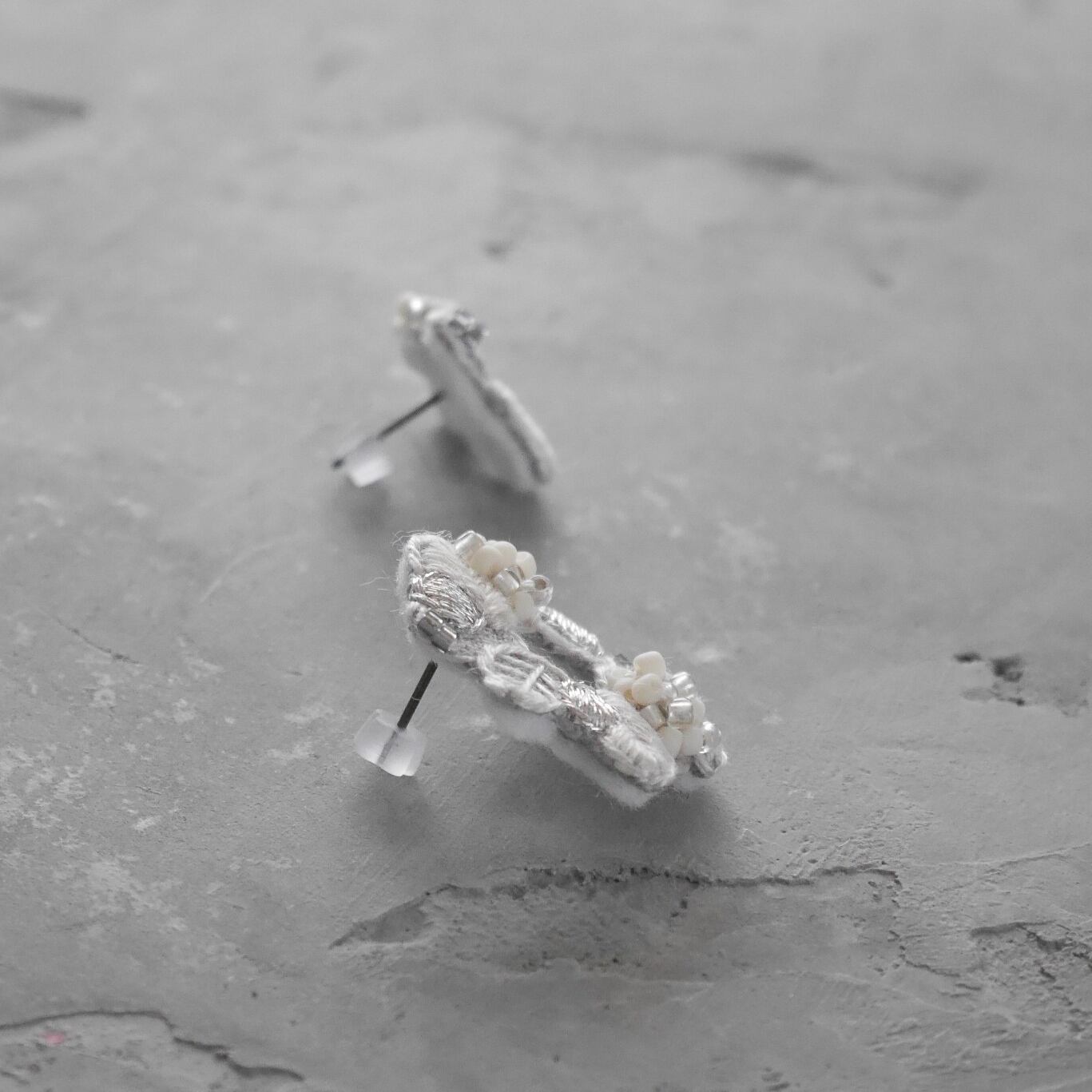 またビーズはマットなオフホワイトとシルバークリアビーズを混ぜて刺しています。