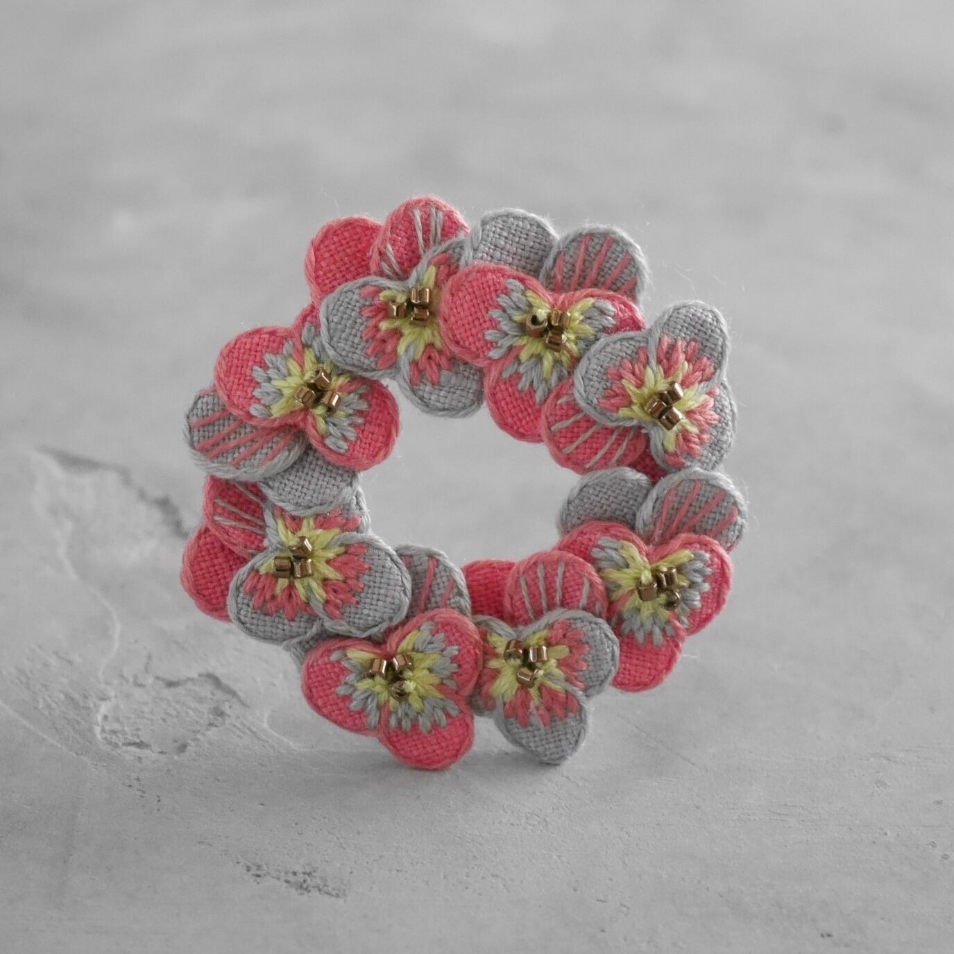 linen viola刺繍ブローチ(コーラルピンク)【受注制作】