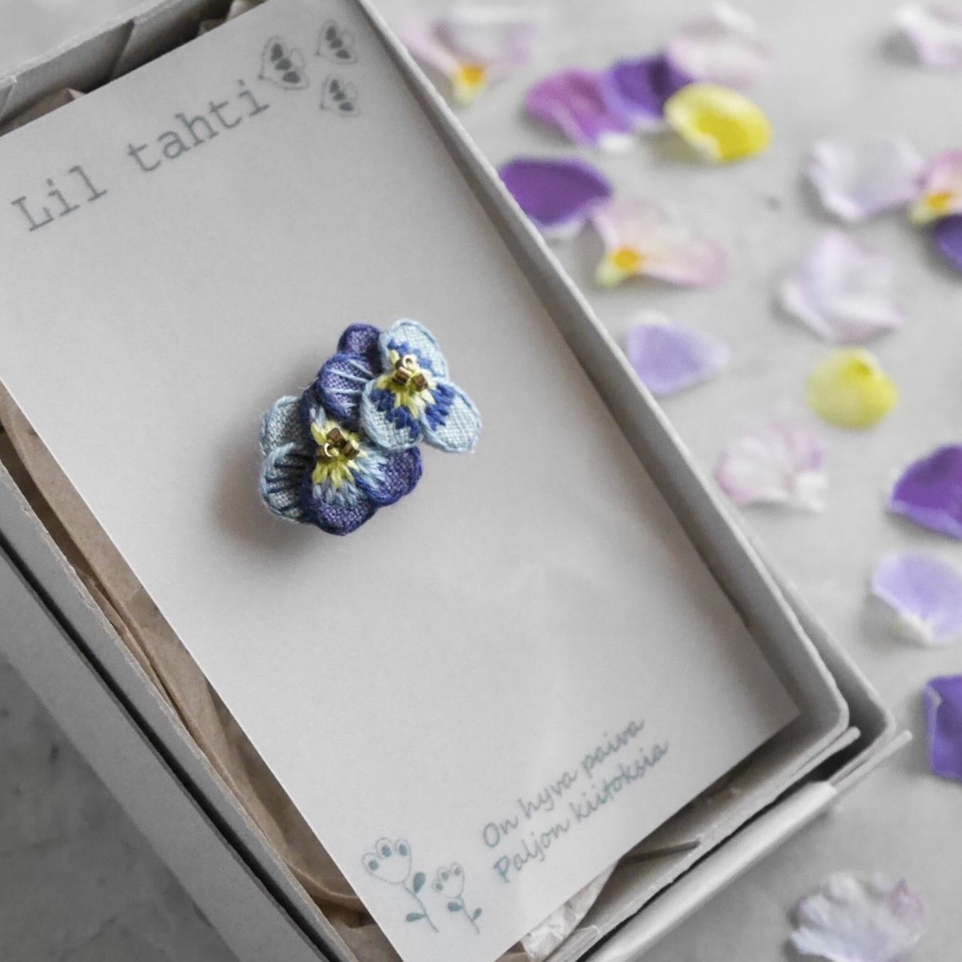 linen viola刺繍ピンブローチ(爽やかブルー)【受注制作】