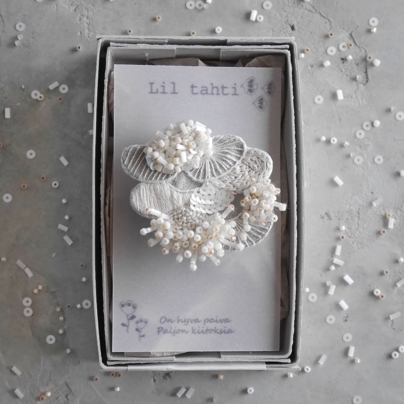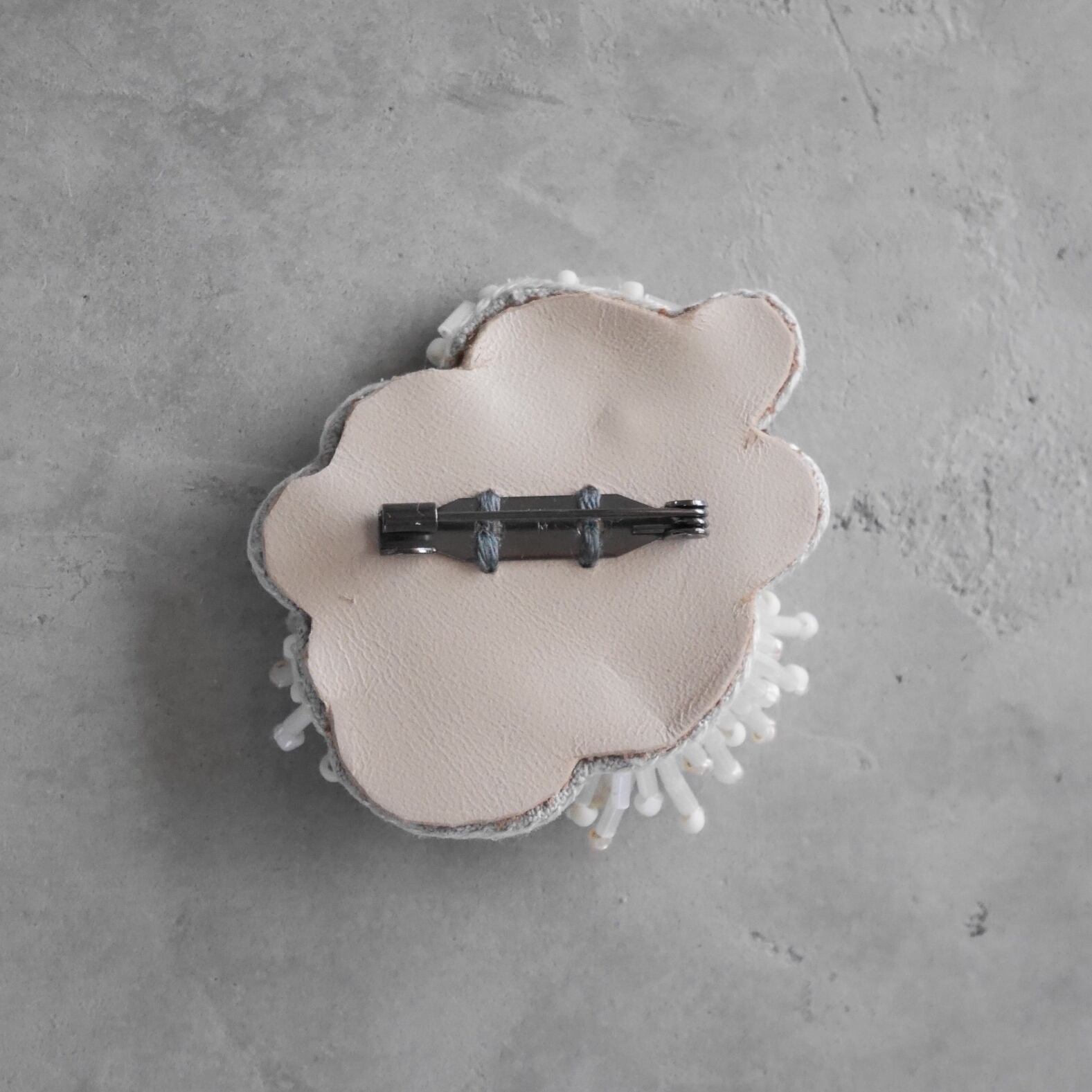 linen sango刺繍ブローチ(オフ)【受注制作】