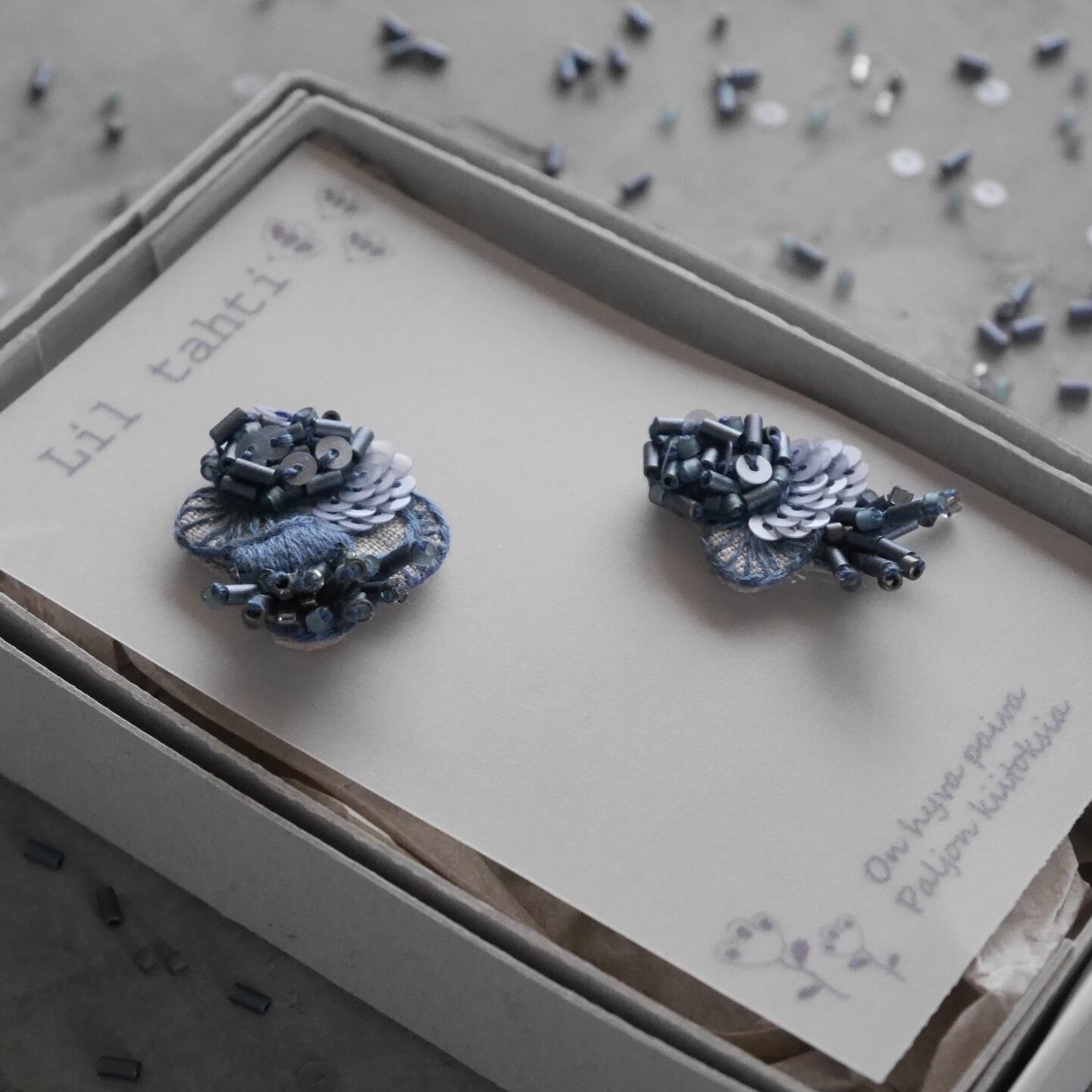 linen sango刺繍ピアス/イヤリング(クラシックブルー)【受注制作】
