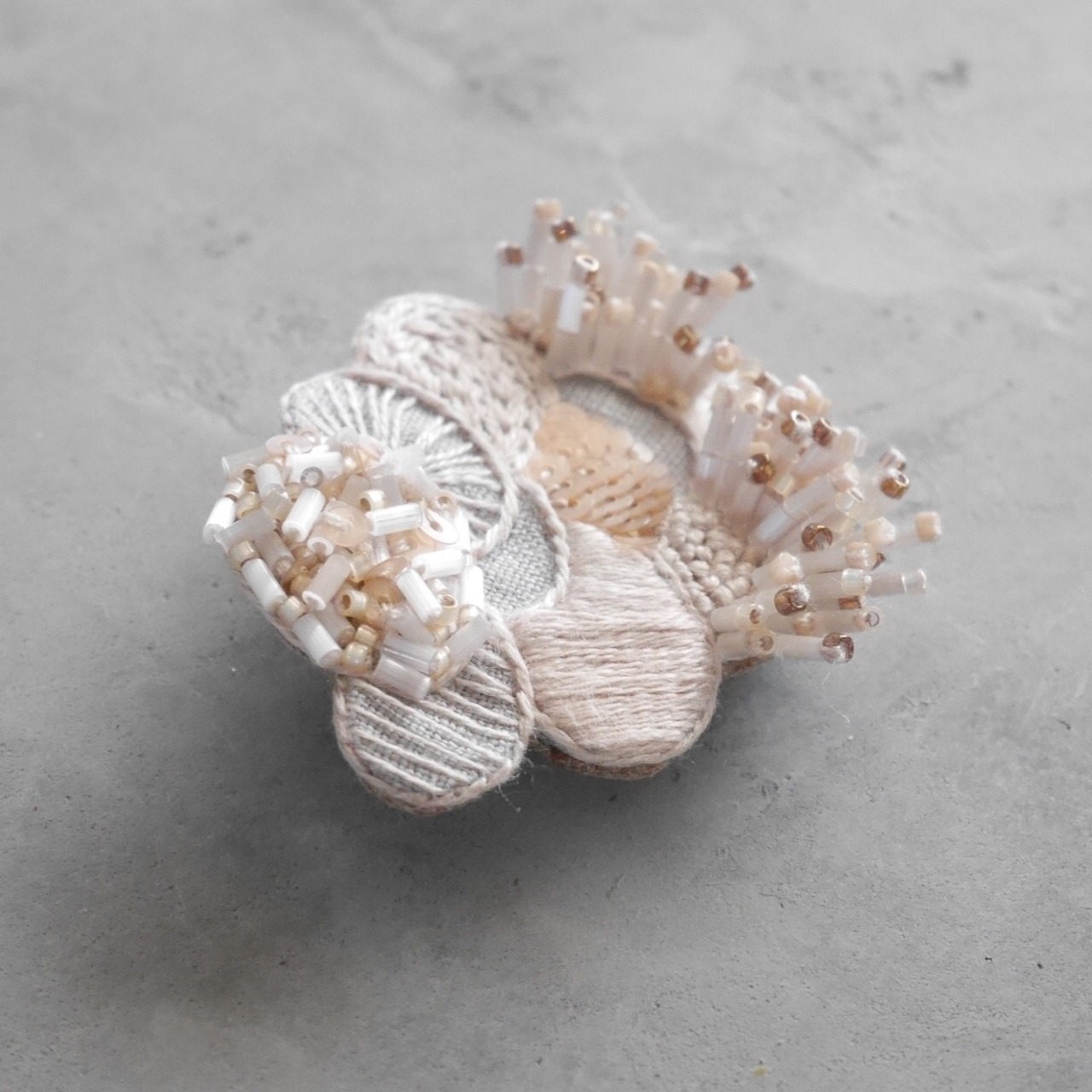 linen sango刺繍ブローチ(ピンクベージュ)【受注制作】