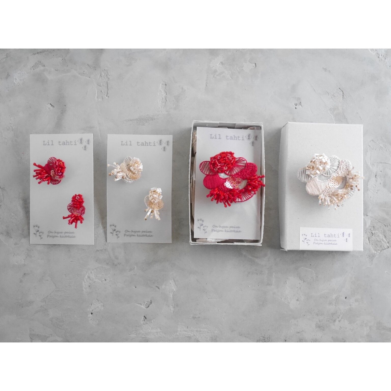右耳用が大きめモチーフ、左耳用が小さめモチーフです。