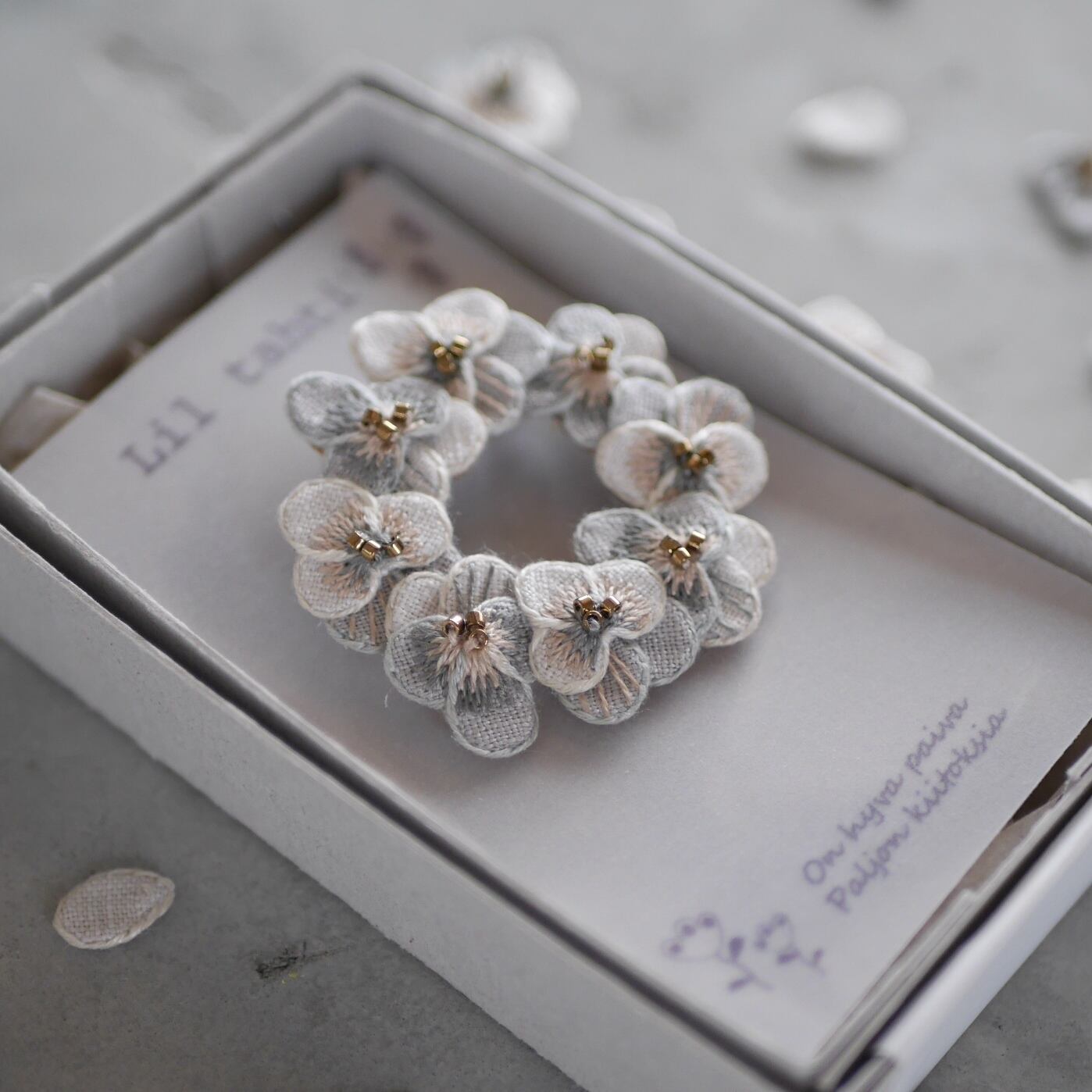 linen viola刺繍ブローチ(ナチュラル)【受注制作】