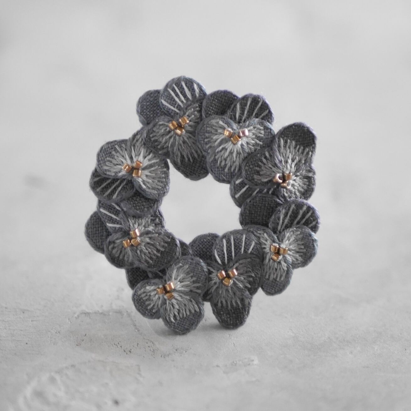 今回はそんなビオラをモチーフに落ち着いた上品な作品を作りたいと思い、秋冬色のブローチに仕上げました。
