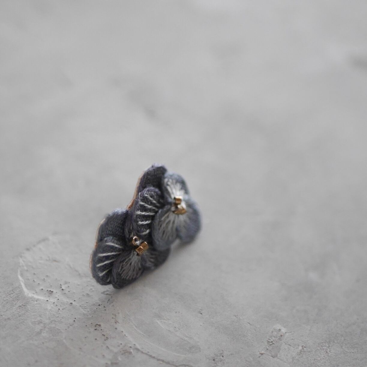 linen viola刺繍ピンブローチ(シック)【受注制作】