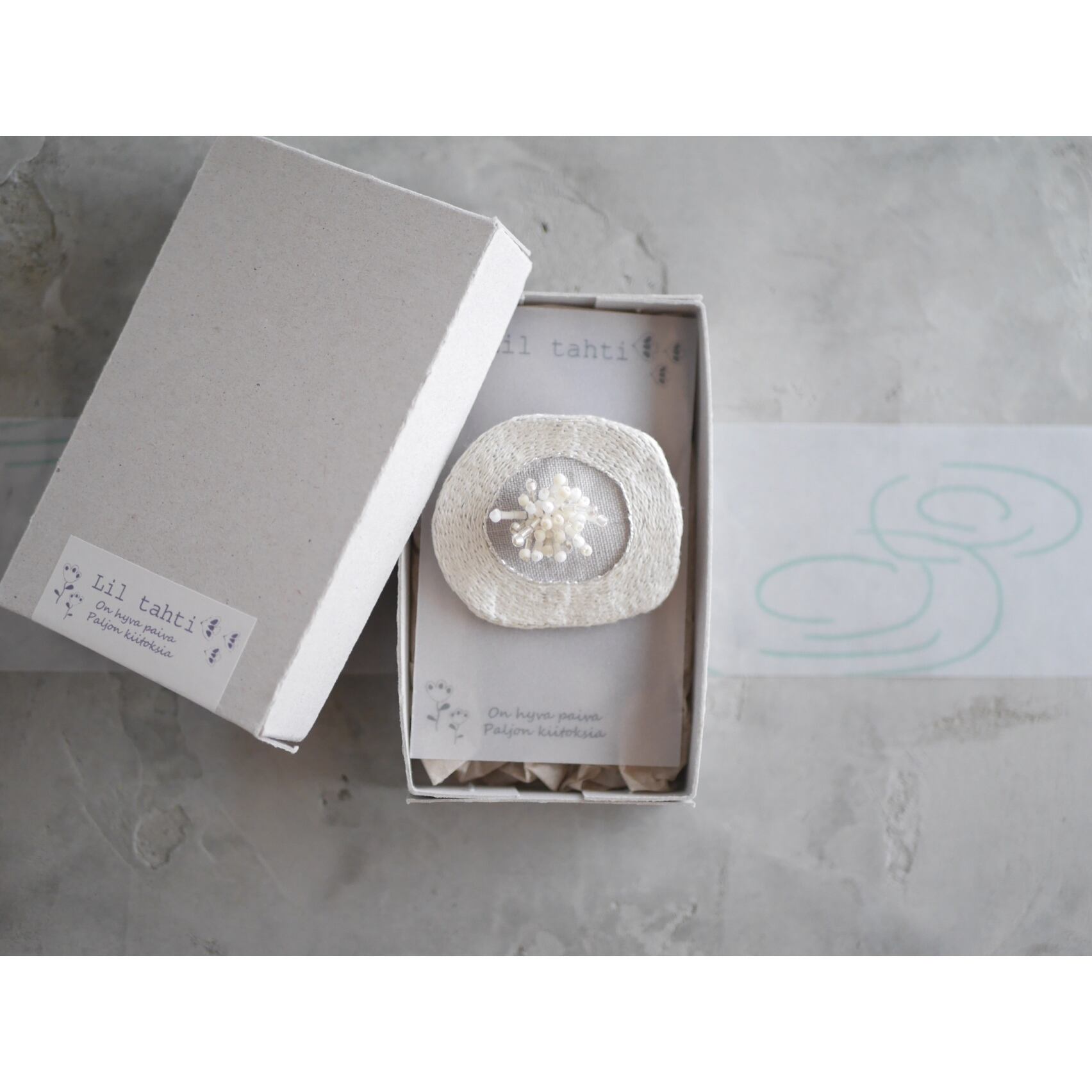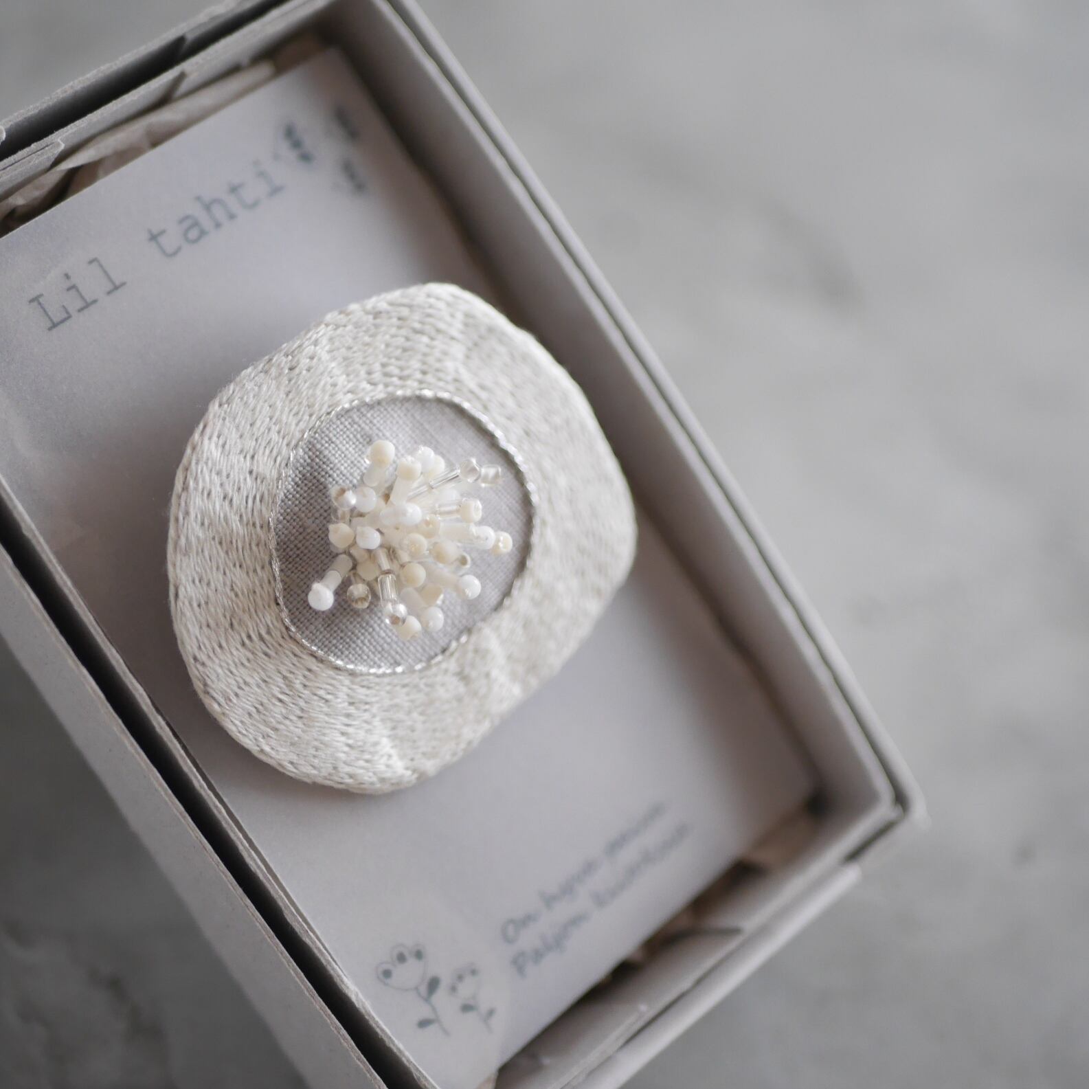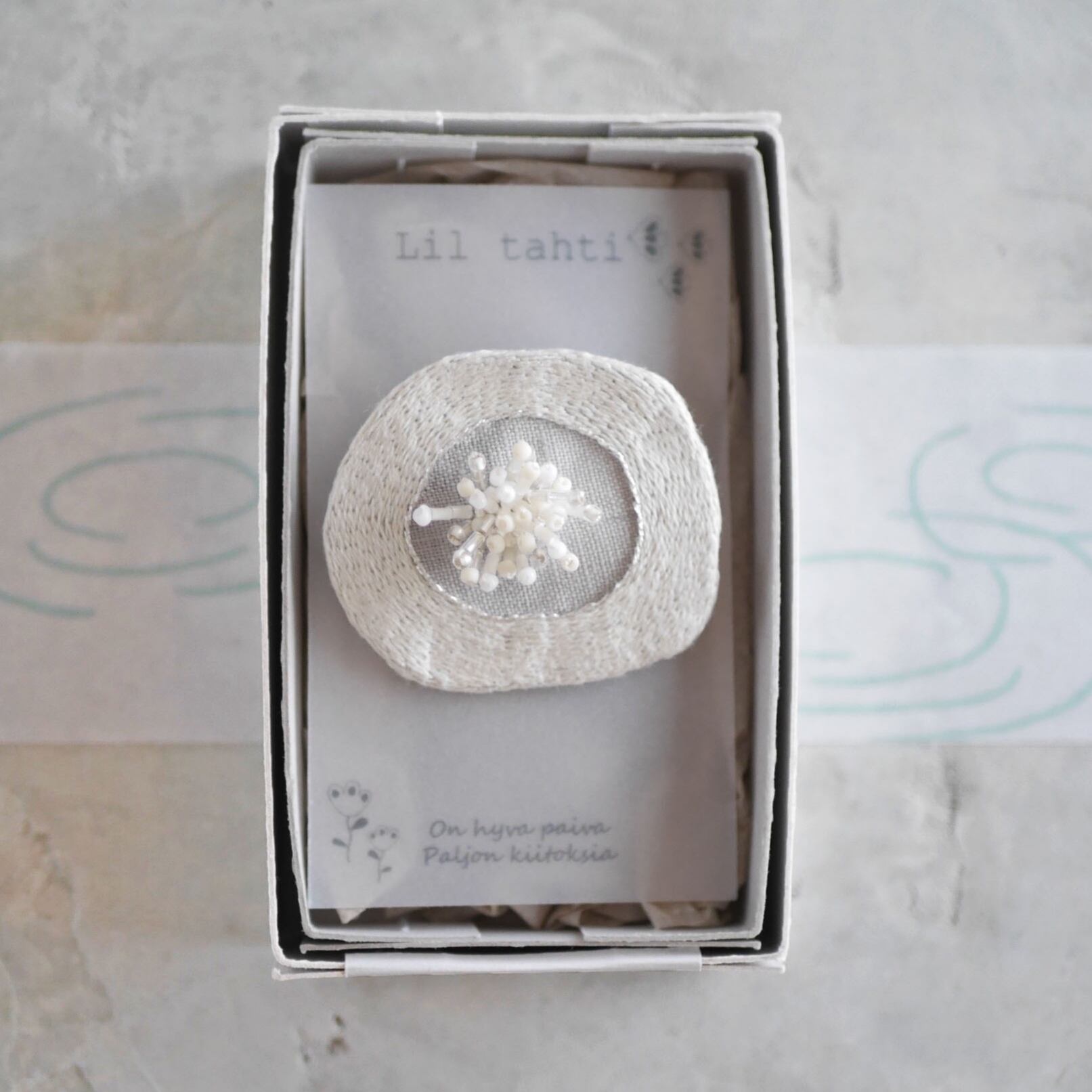 linen hanahamon刺繍ブローチ(オフ)【受注制作】