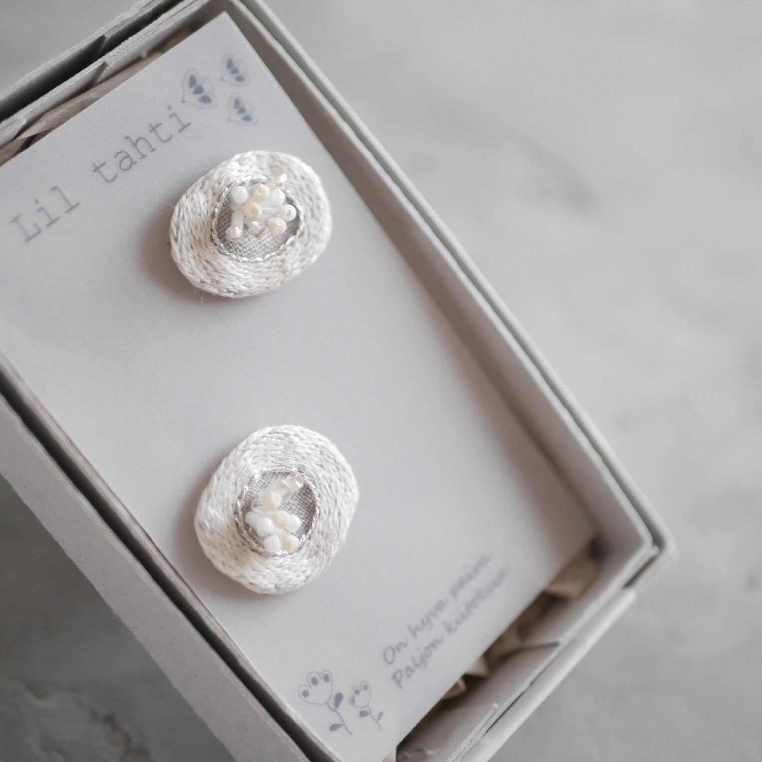 linen hanahamon刺繍ピアス/イヤリング(オフ)【受注制作】