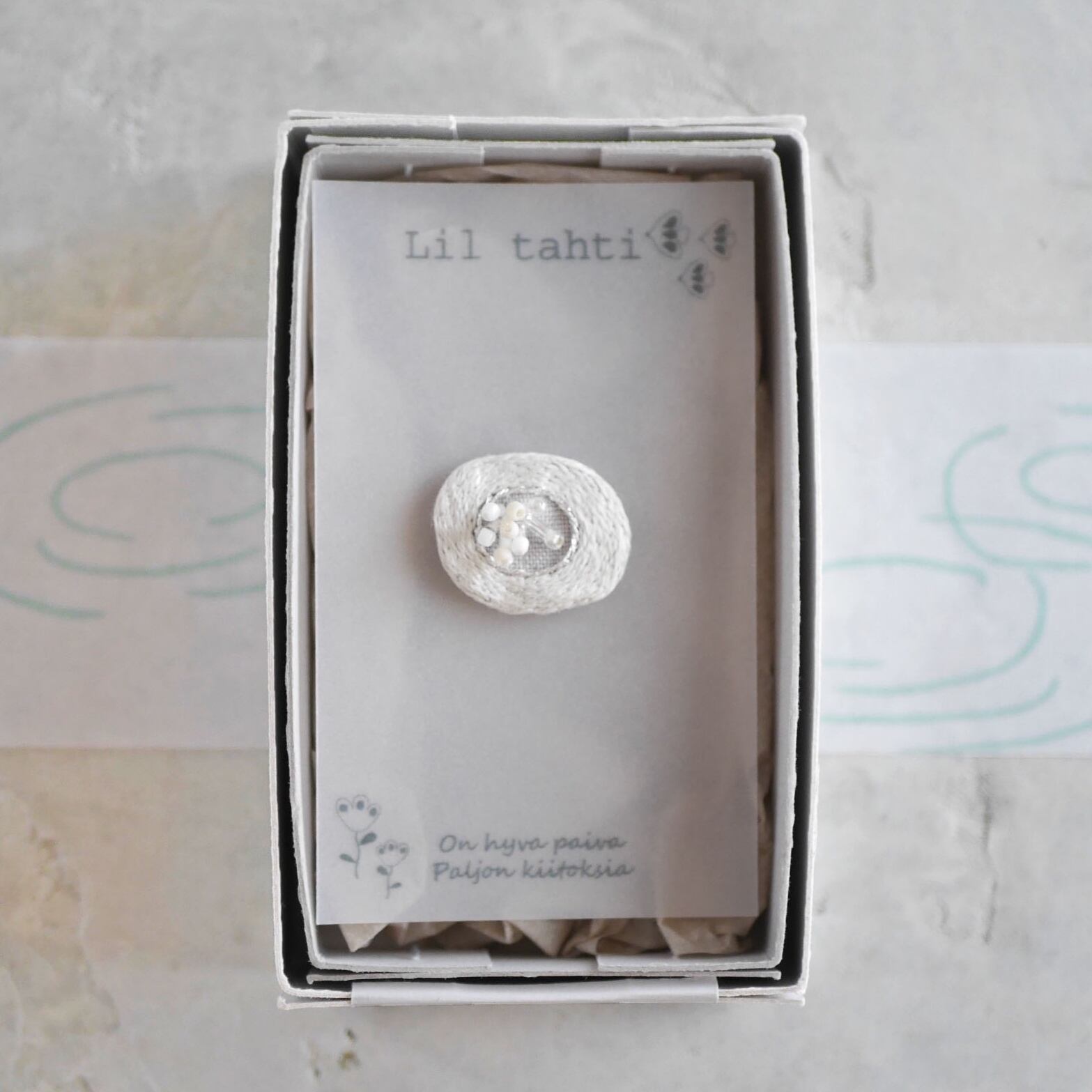 linen hanahamon刺繍ピンブローチ(オフ)【受注制作】
