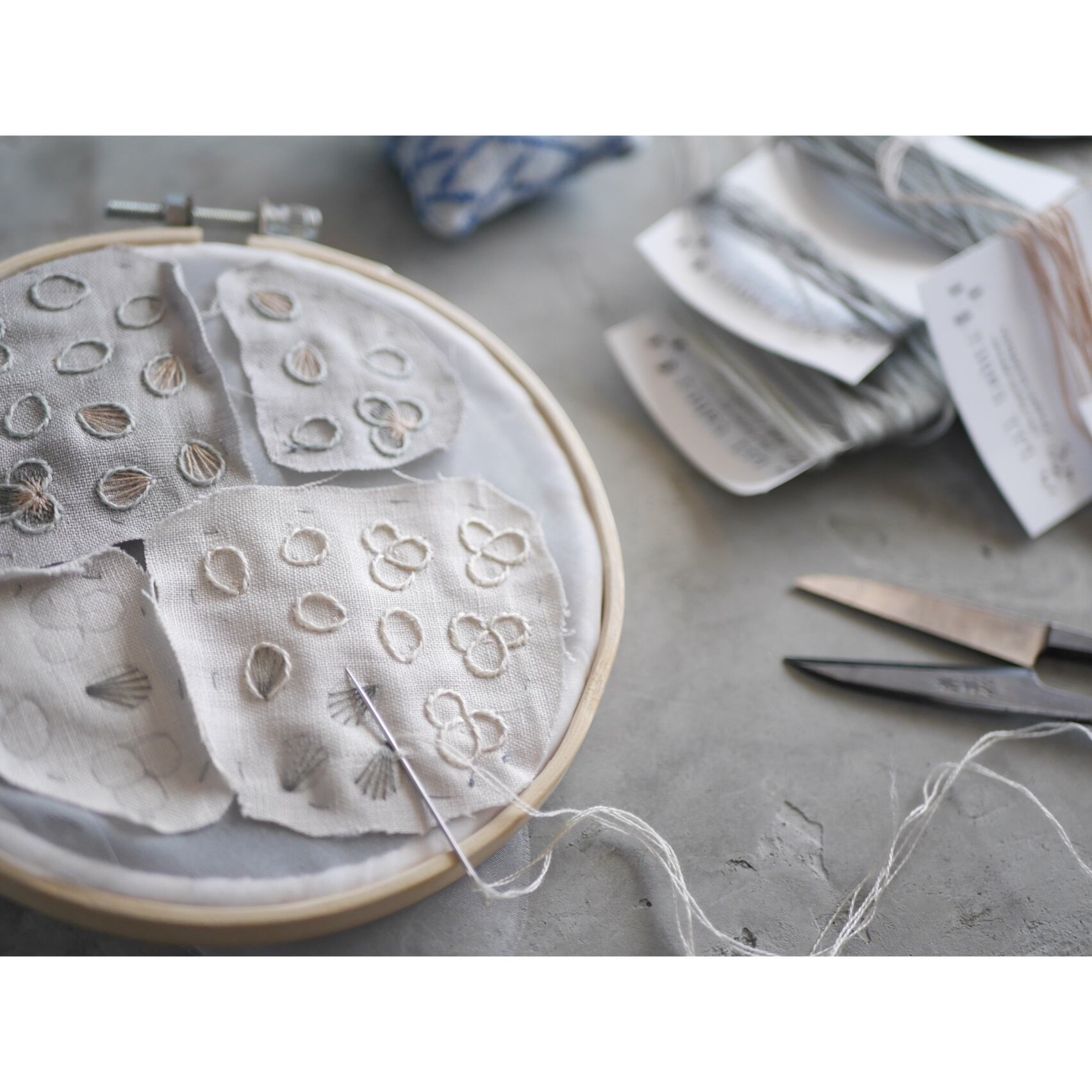 ひと針ひと針刺繍を施した2色のリネン生地から出来ているこの作品は、
