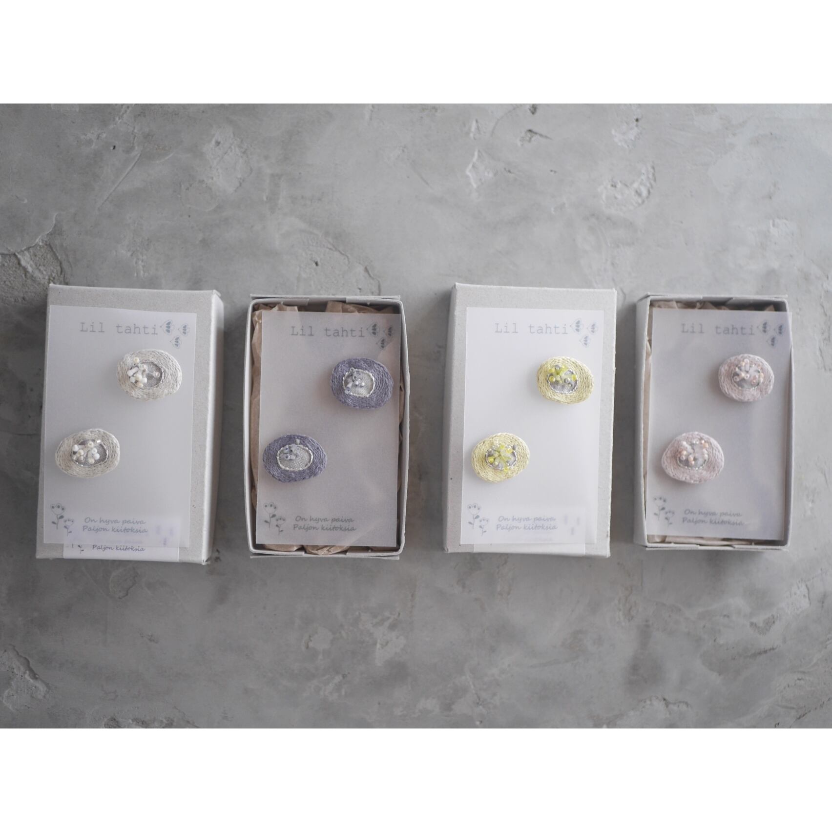 hanahamonと名付けて制作した刺繍ピアス、イヤリングです。