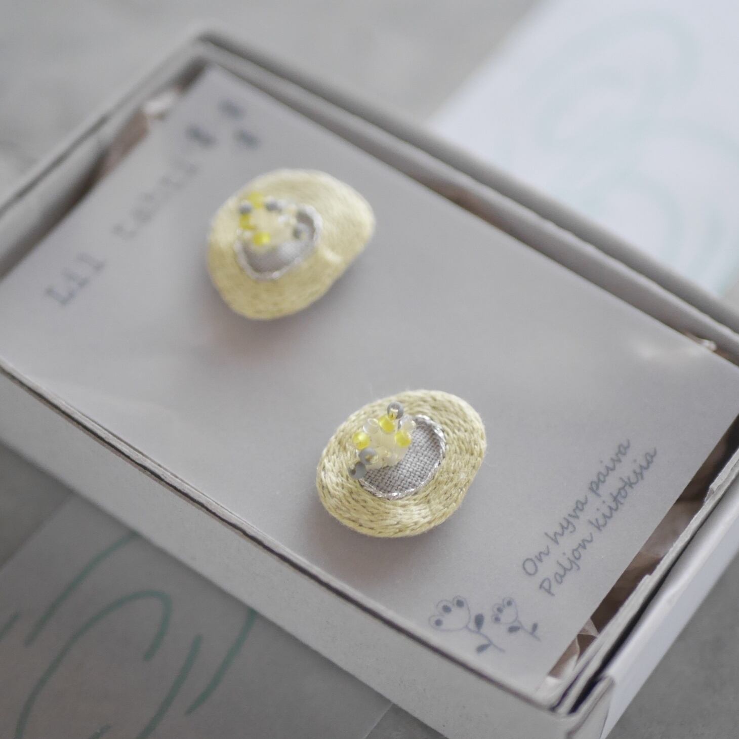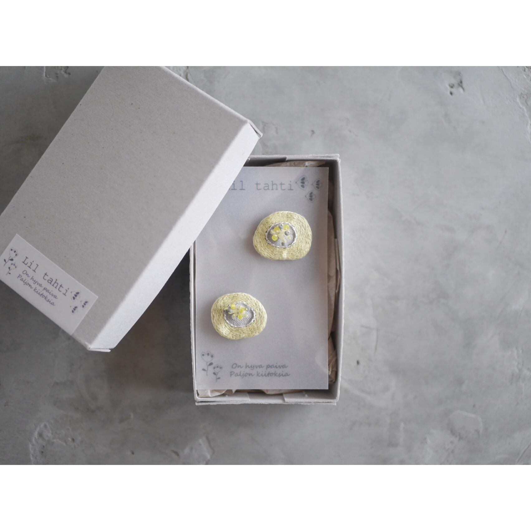linen hanahamon刺繍ピアス/イヤリング(ペールイエロー)【受注制作】