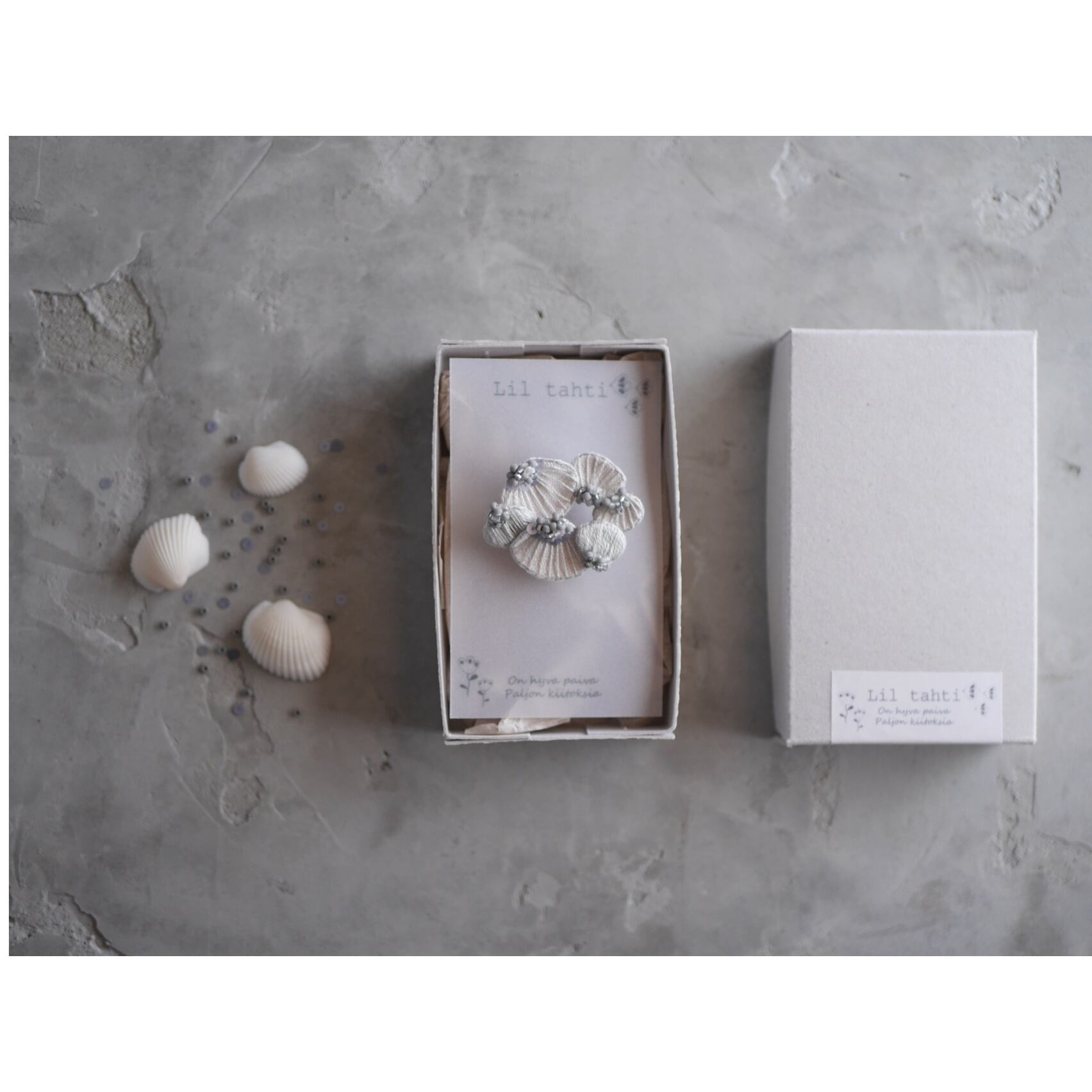 貝殻と花びらをイメージした刺繍ブローチです。