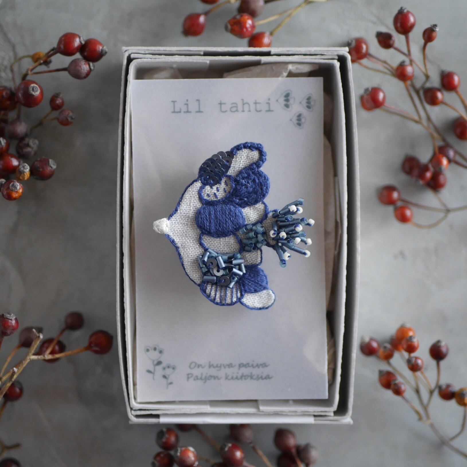 linen tori刺繍ブローチ(ネイビー)【受注制作】
