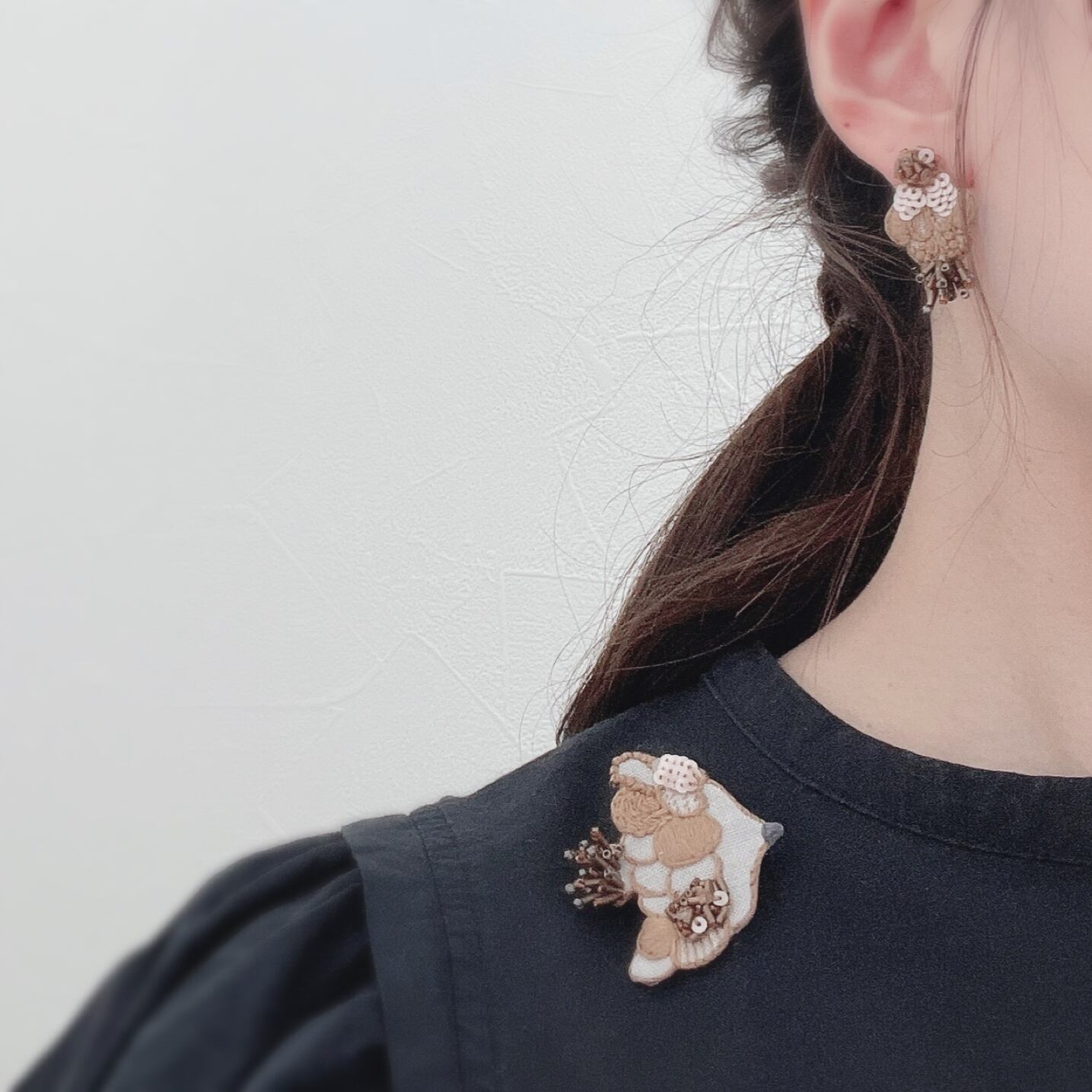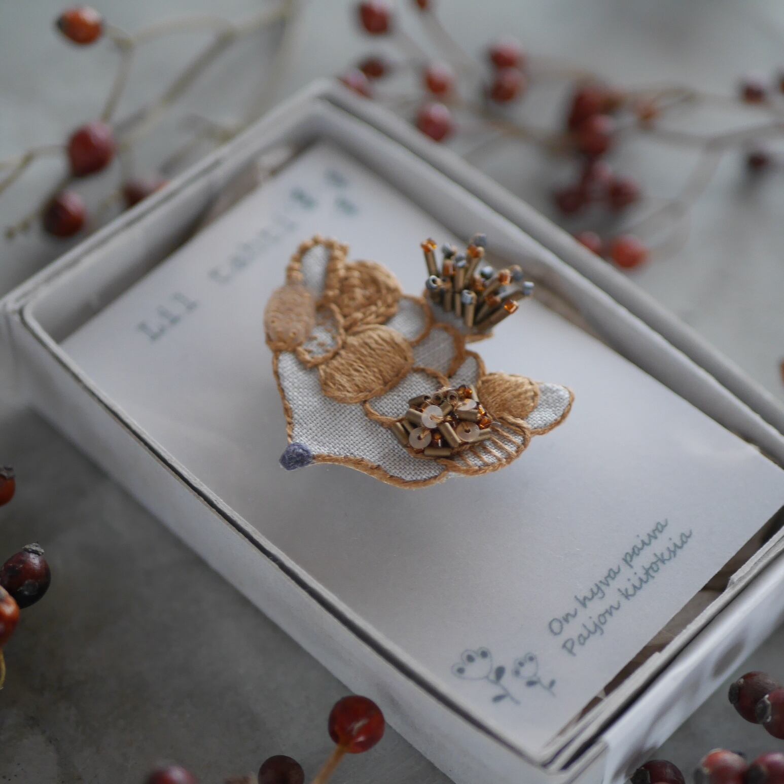 linen tori刺繍ブローチ(キャメル)【受注制作】