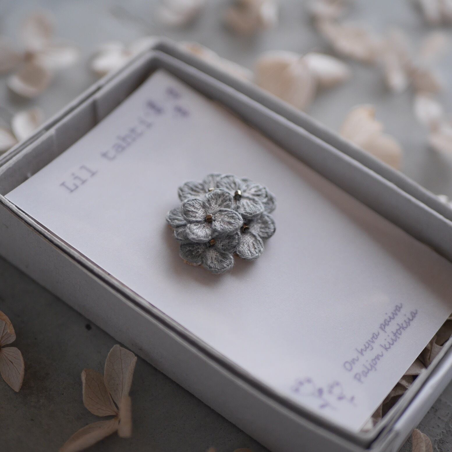 temari ajisai刺繍ピンブローチ(グレー)【受注制作】