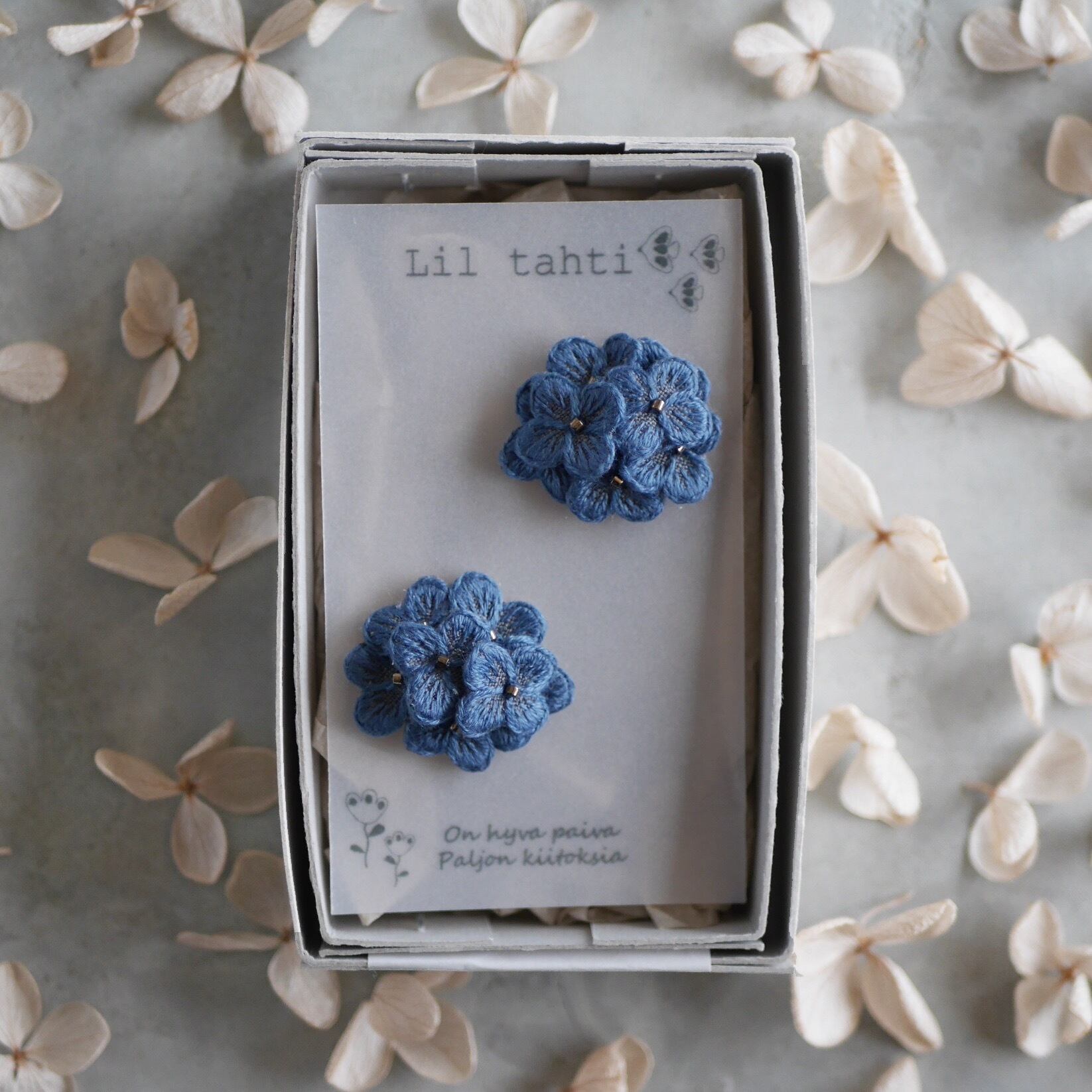 temari ajisai刺繍ピアス/イヤリング(ネイビーブルー)【受注制作】