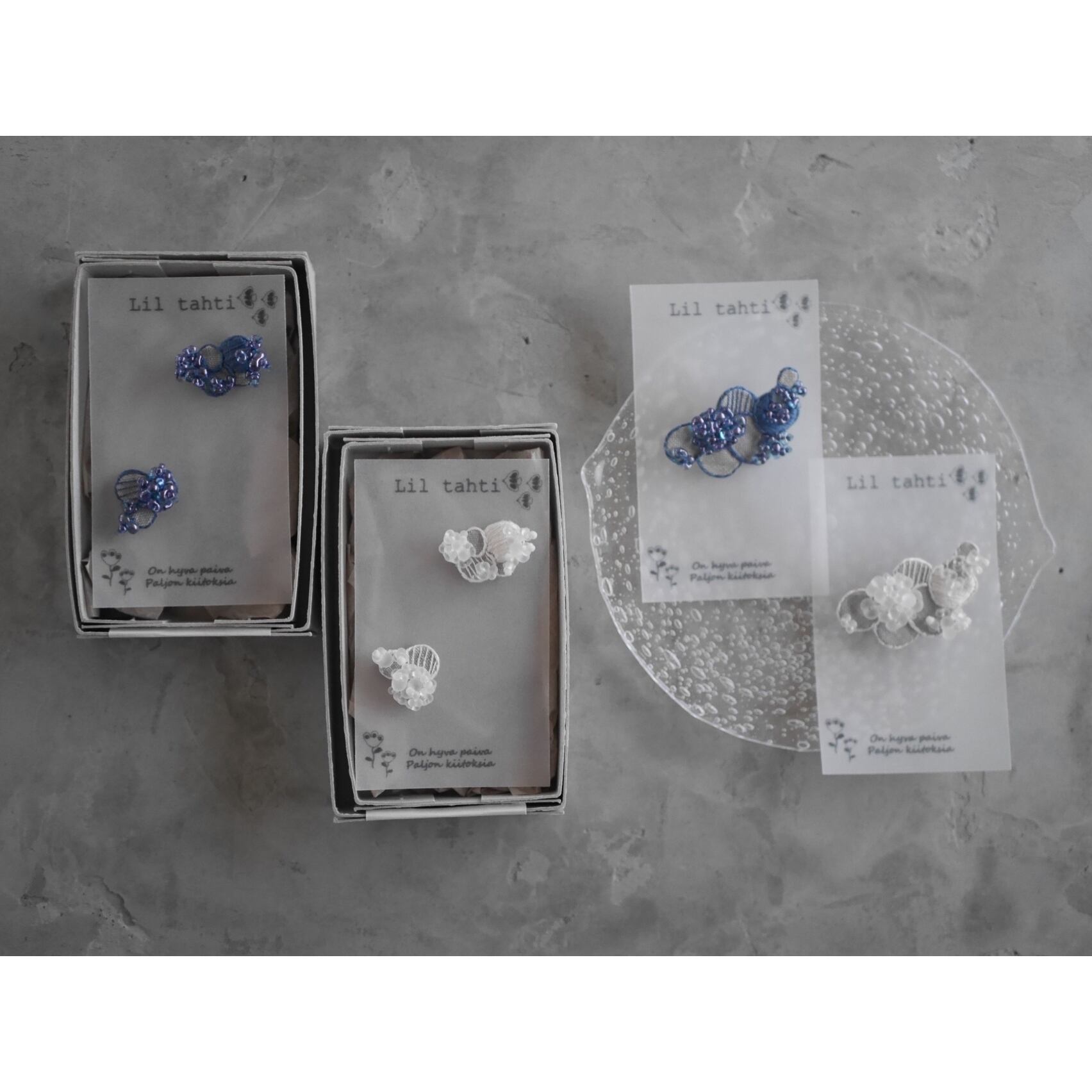 夏の暑い季節に涼やかなアクセサリーをと思いできた作品です。