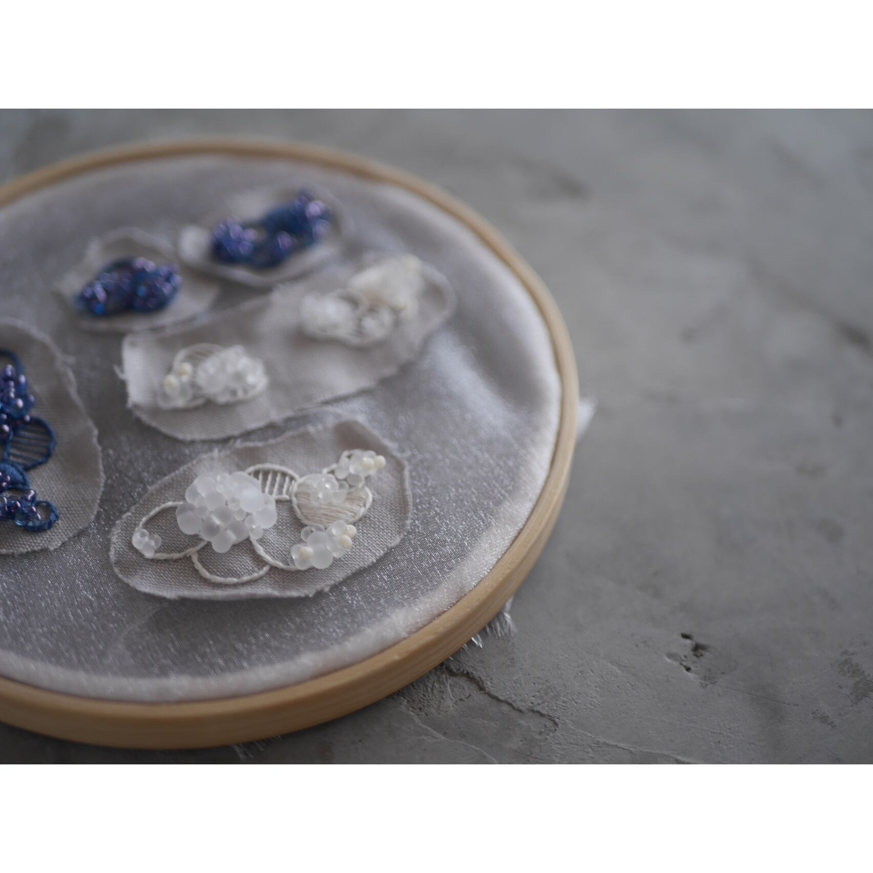 気泡をイメージした刺繍ピンブローチです。
