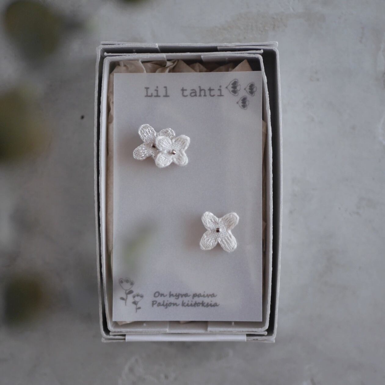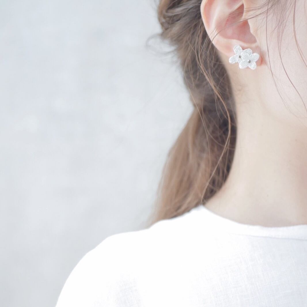 銀木犀をイメージした刺繍ピアス/イヤリングです。