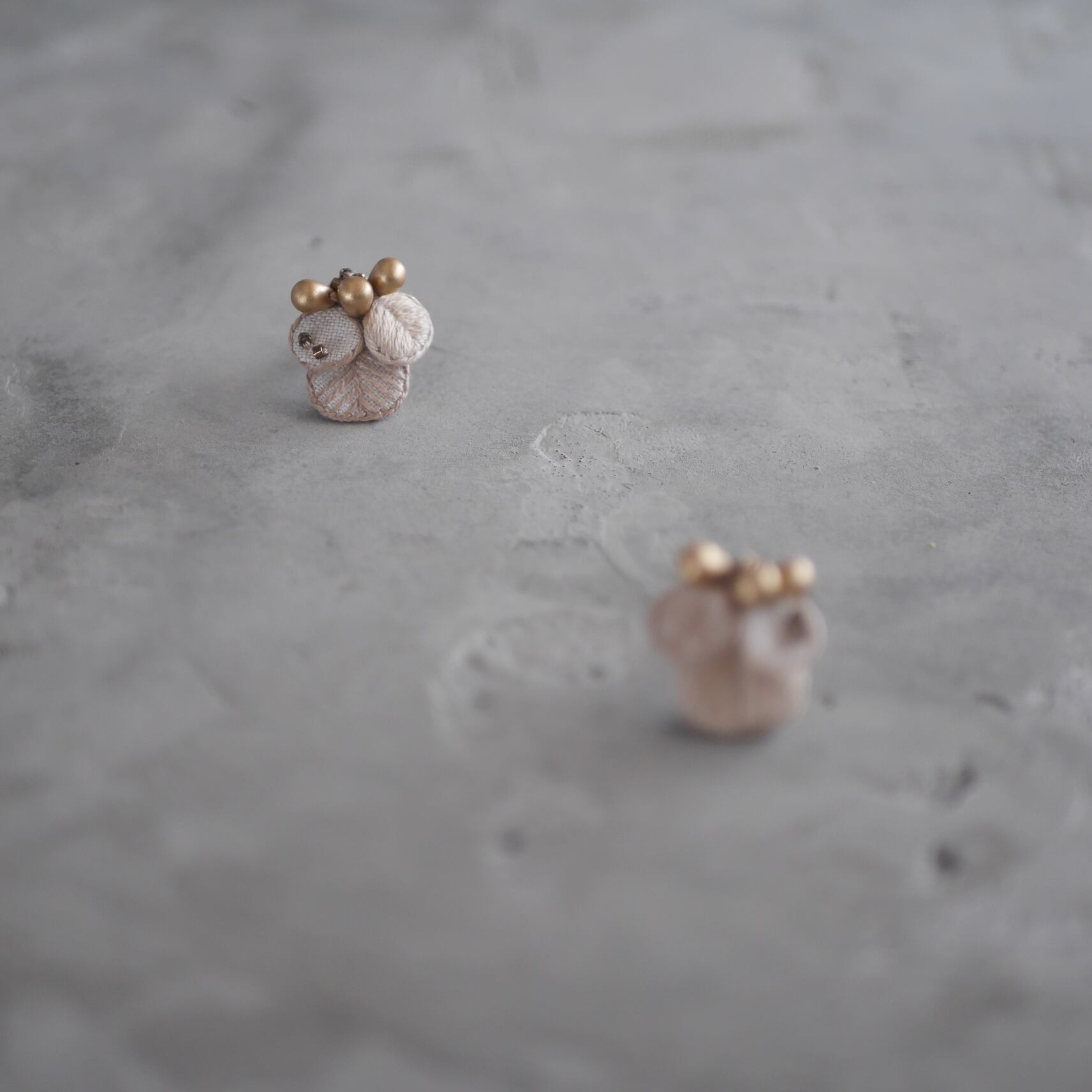 christmas leaf刺繍ピアス/イヤリング(ベージュ)【受注制作】