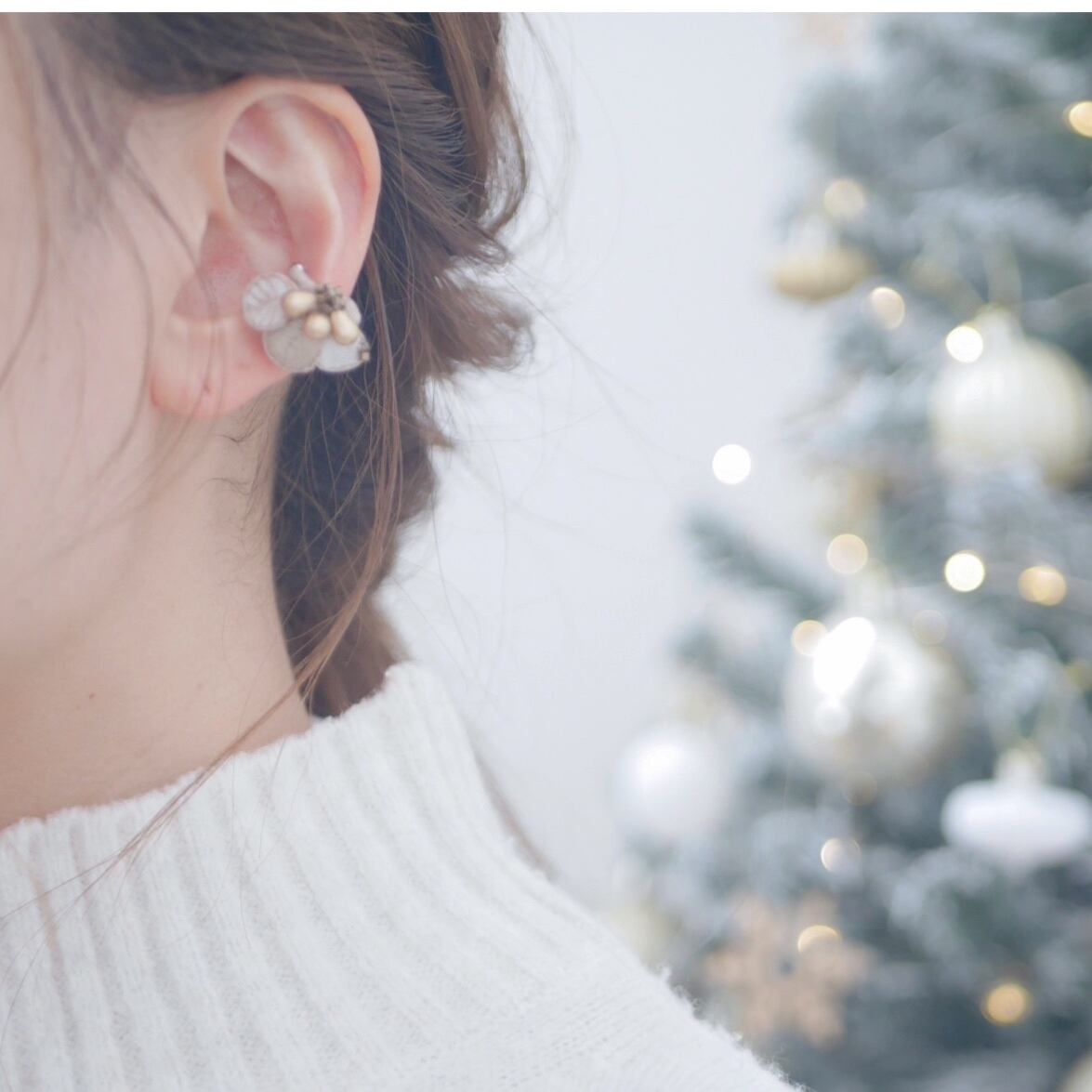 存在感のあるゴールドのビーズを使用しており、さりげなくクリスマスの雰囲気を感じられるイヤーカフです。