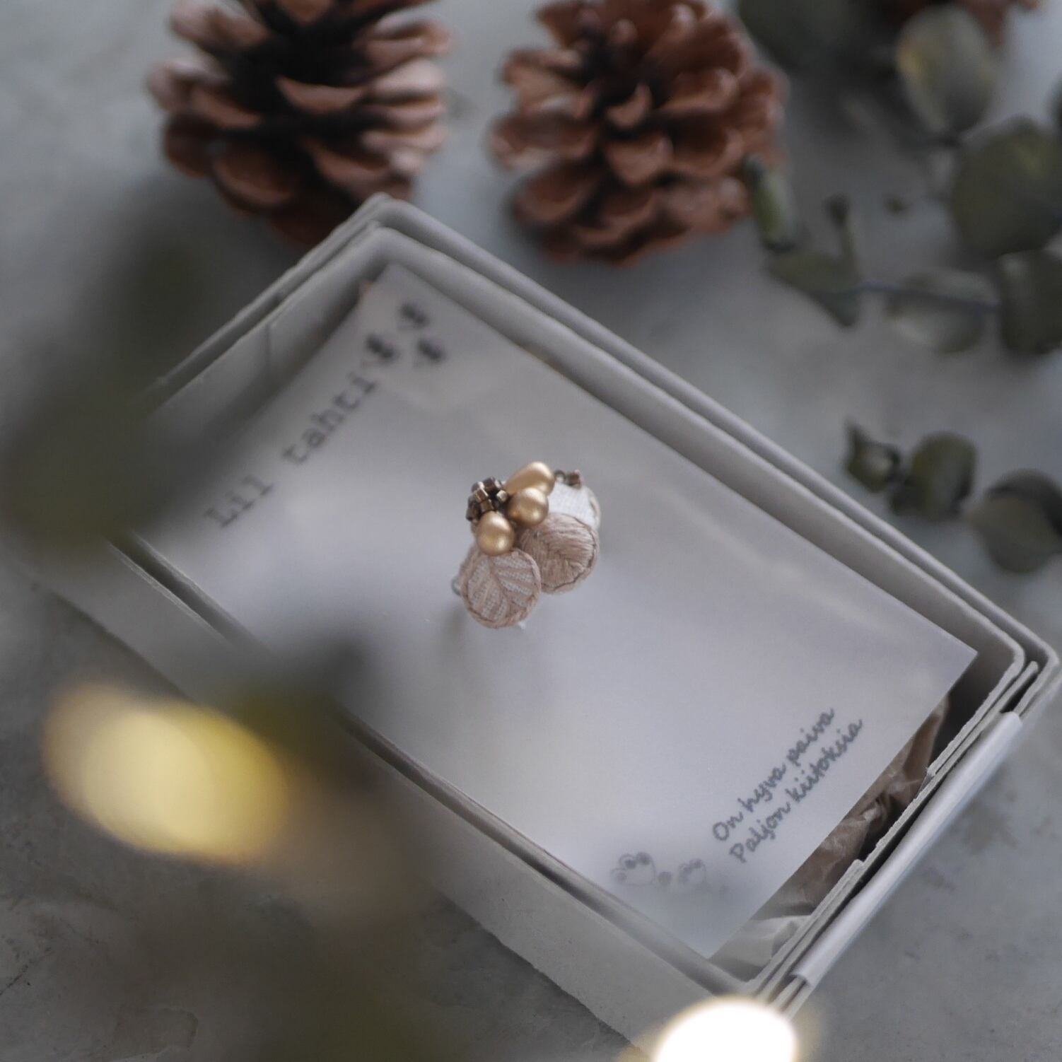 christmas leaf刺繍イヤーカフ(ベージュ)【受注制作】