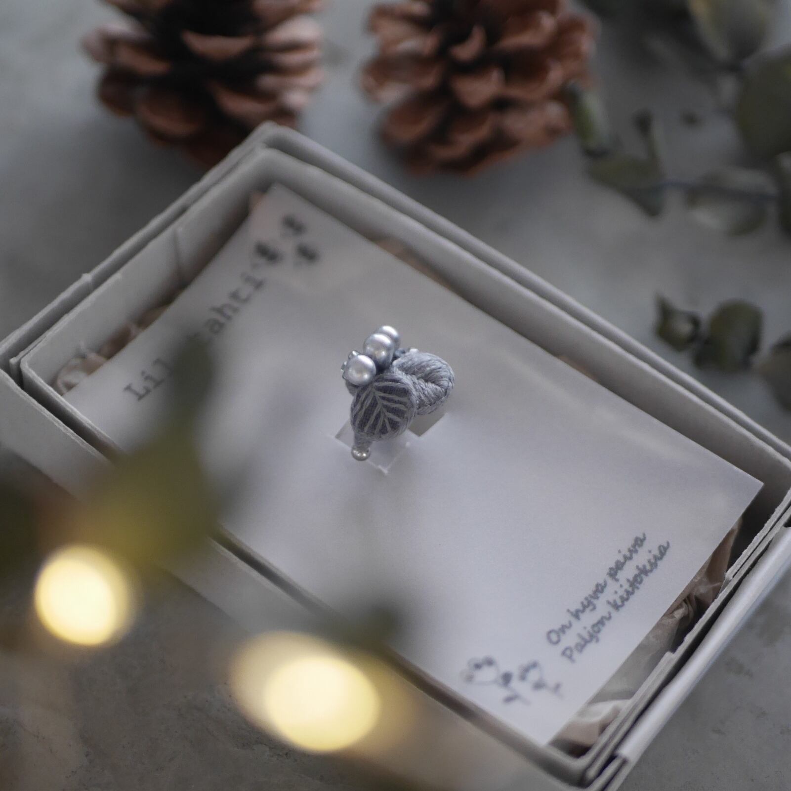 christmas leaf刺繍イヤーカフ(チャコールグレー)【受注制作】