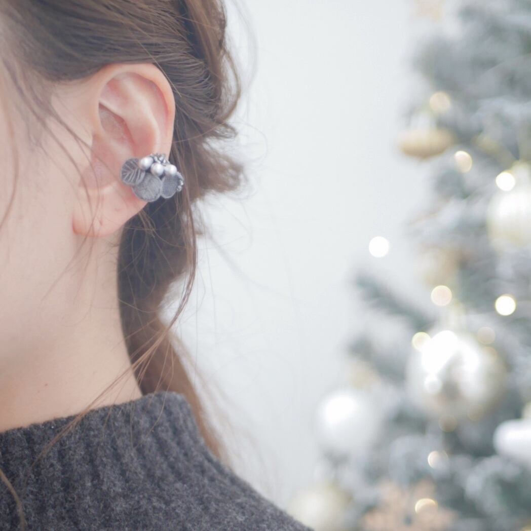 存在感のあるマットなシルバーのビーズを使用しており、さりげなくクリスマスの雰囲気を感じられるイヤーカフです。