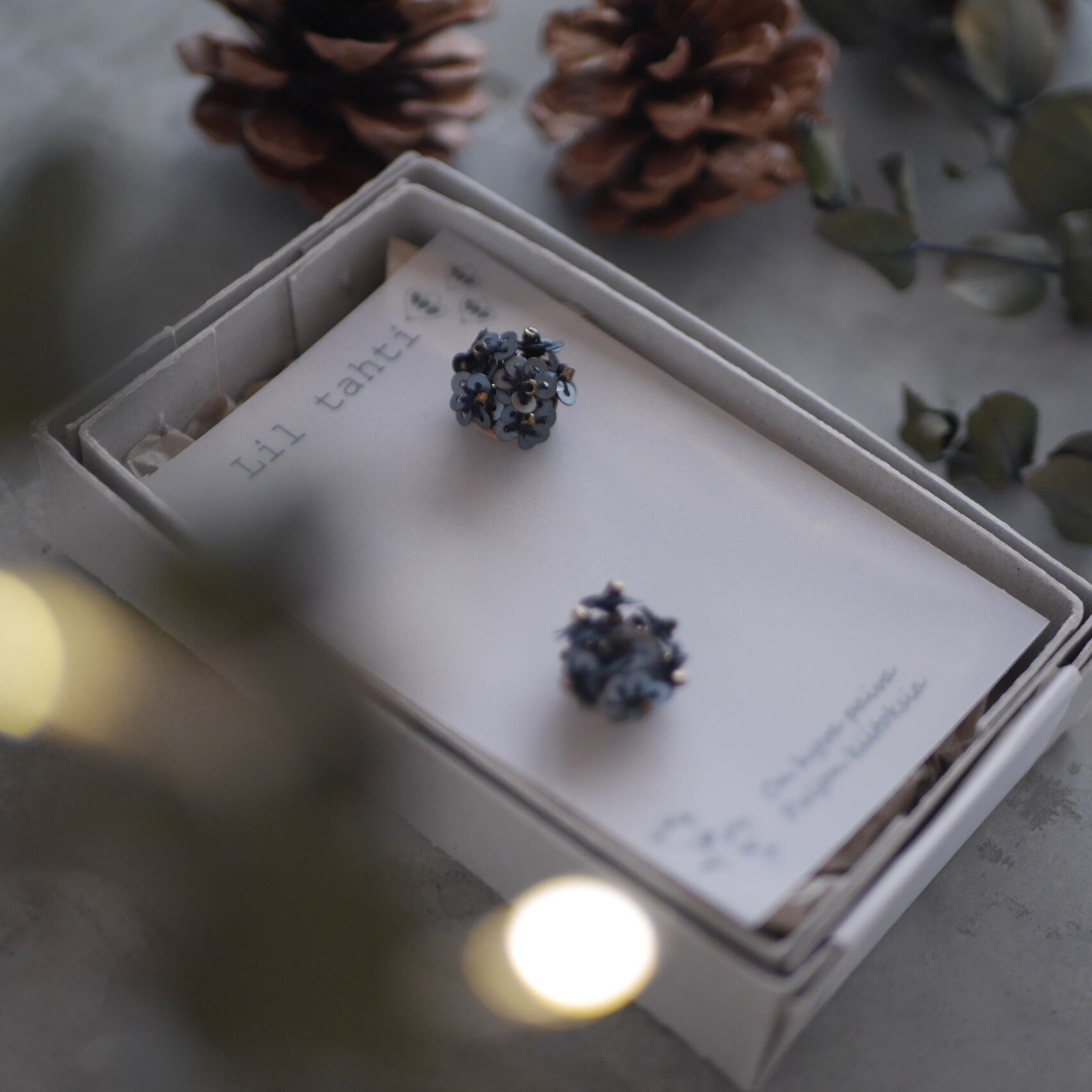 little bouquet〜ニッセからの贈りもの〜ビーズ刺繍ピアス/イヤリング(ブラック)【受注制作】
