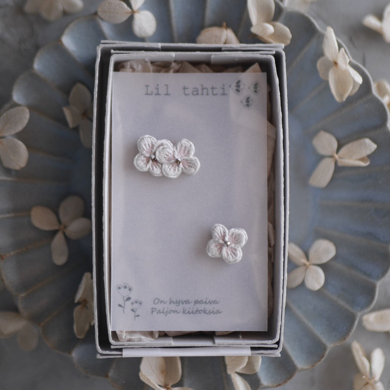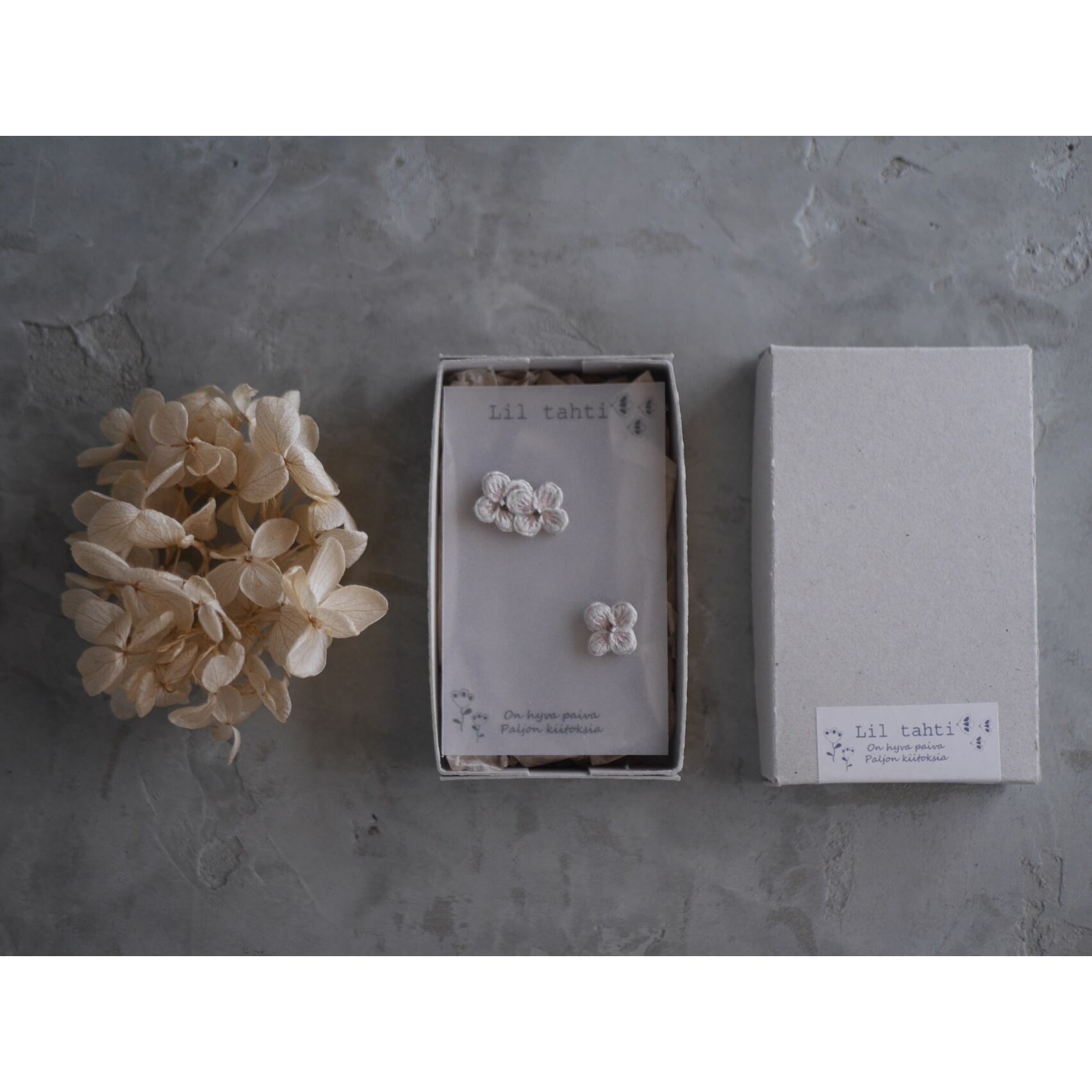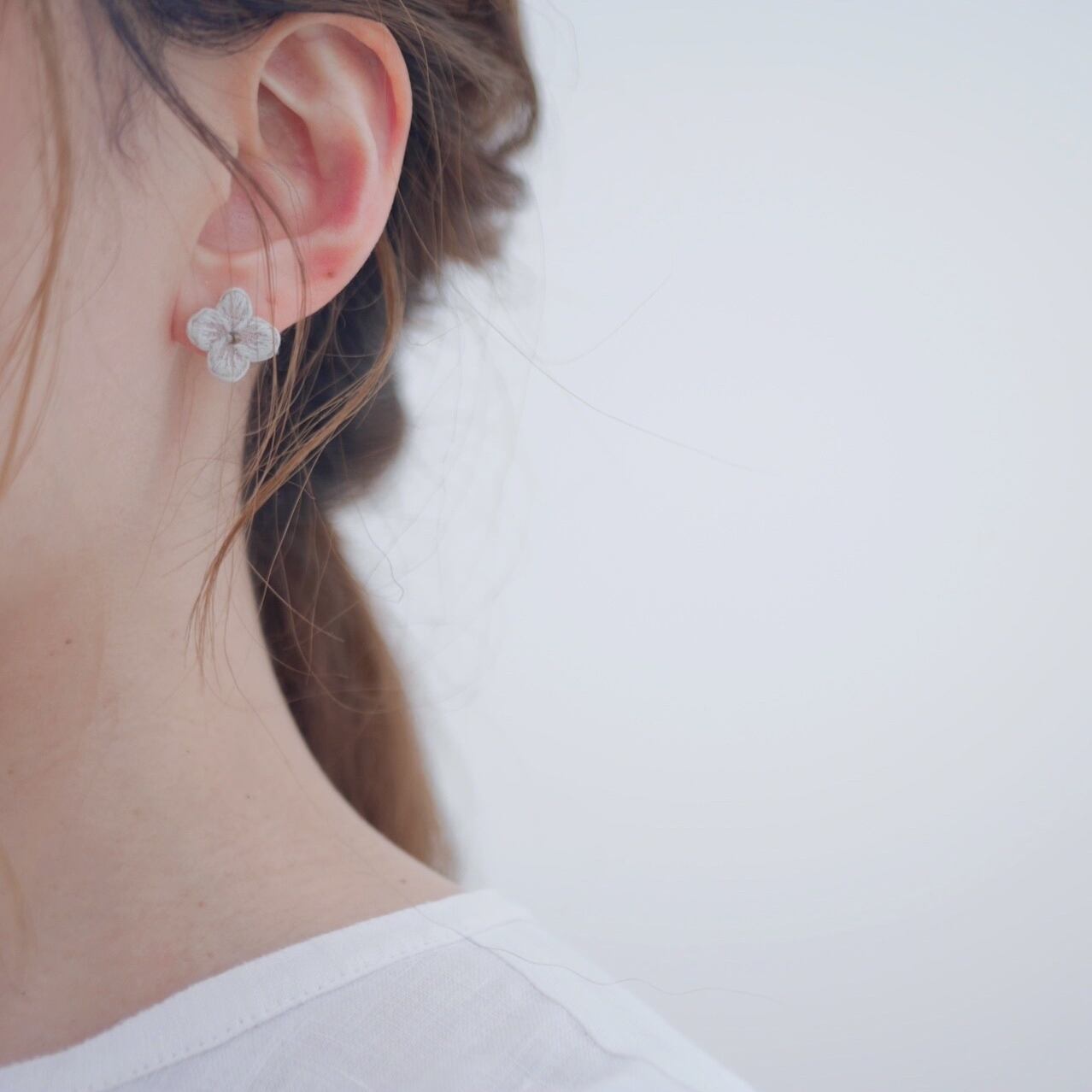 temari ajisaiシリーズの小ぶりな刺繍ピアス/イヤリングです。