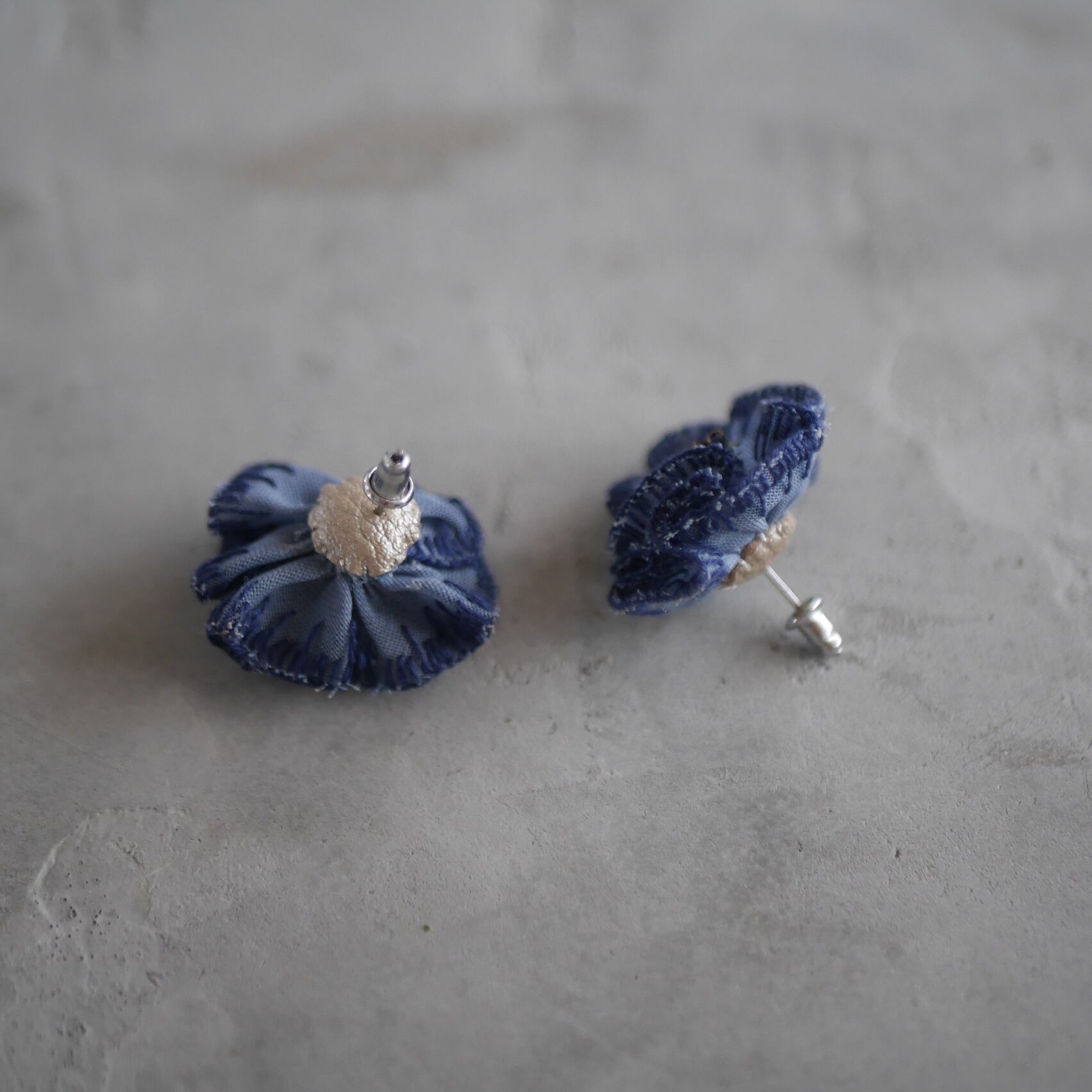 frill flower刺繍ピアス/イヤリング(ネイビー)【受注制作】