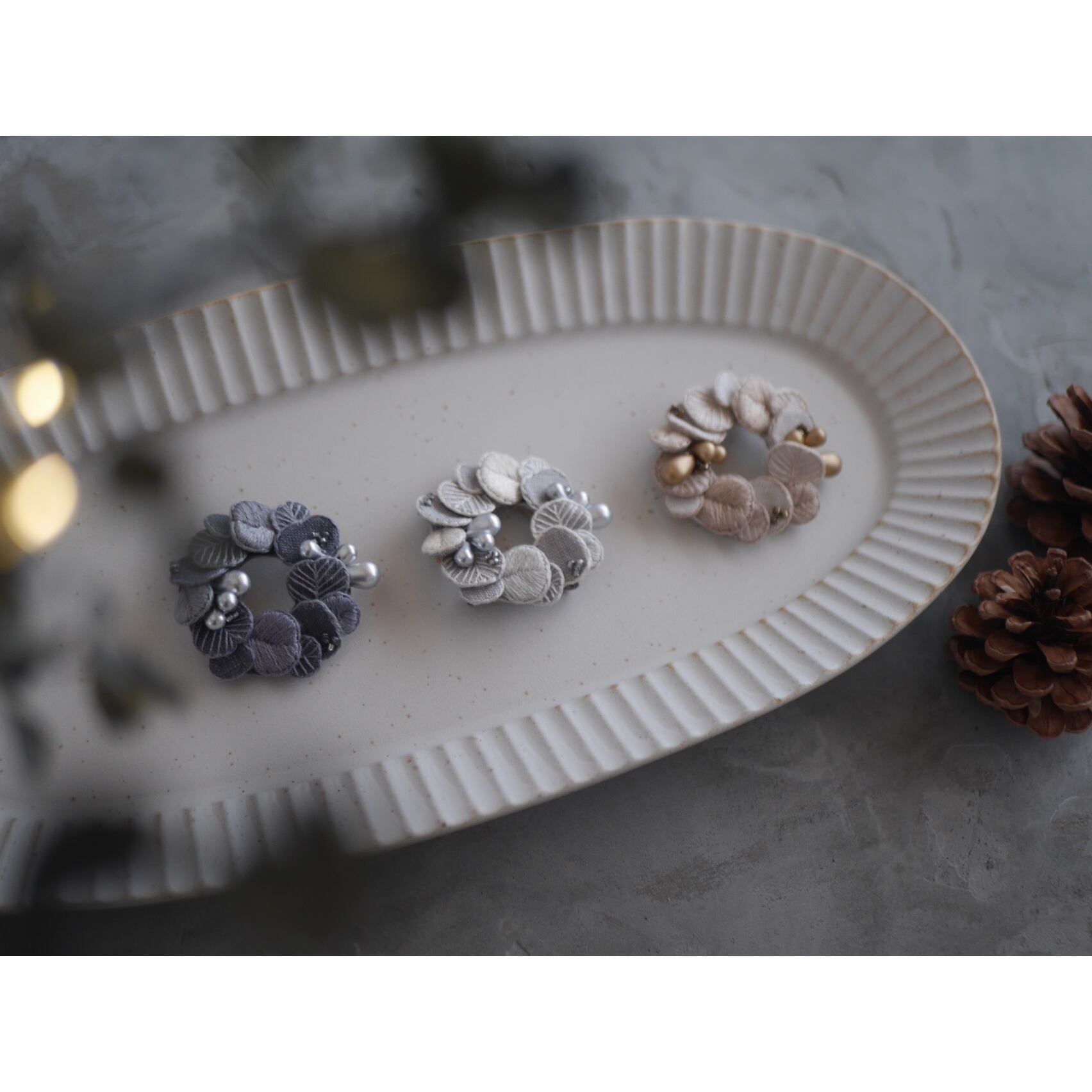 christmas wreath刺繍ブローチ(チャコールグレー)【受注制作】